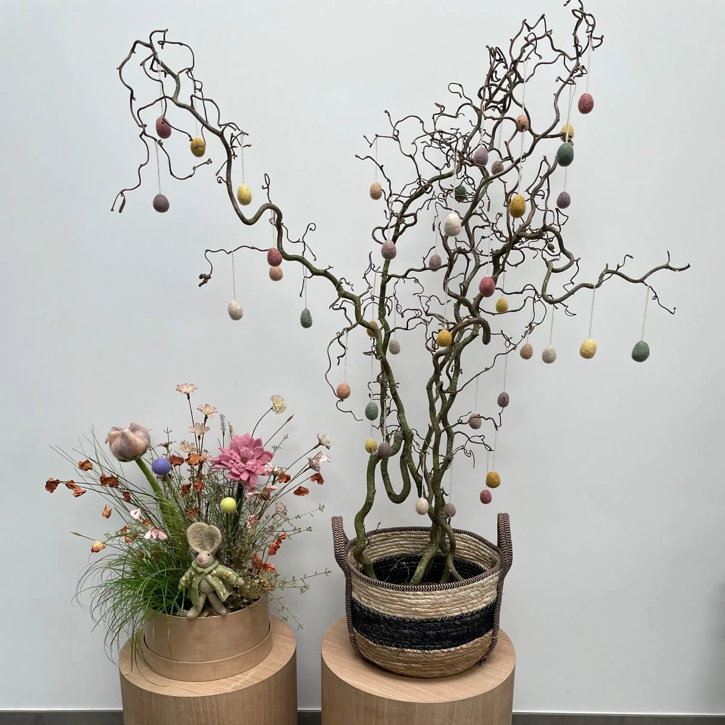 Ein Bündel von 5 Haselzweigen in ihrer natürlichen Farbe und Form mit einer Länge von jeweils ca. 100 cm. Die charakteristische Drehung und die natürliche Struktur der Haselnuss machen diese Zweige zu einer perfekten Grundlage für kreative Dekorationen.