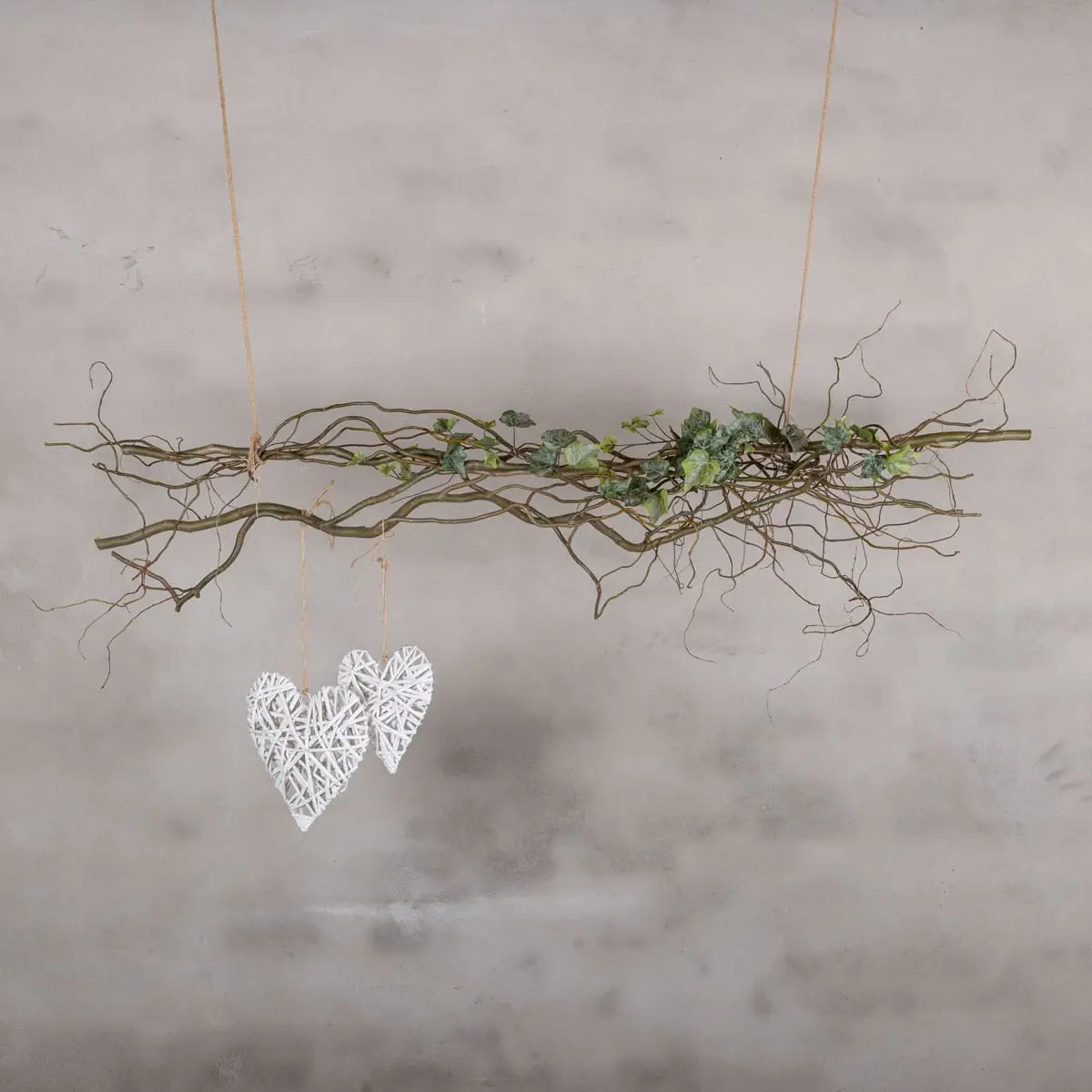 Dieser einzigartige Weidenanhänger bringt einen verspielten und natürlichen Touch in deine Einrichtung. Die gewundene Form der Weidenzweige sorgt für einen lebendigen und dekorativen Effekt und verleiht jedem Anhänger ein etwas anderes Aussehen. Sie eignet sich perfekt als Blickfang über einem Esstisch, einem Sideboard oder vor dem Fenster.