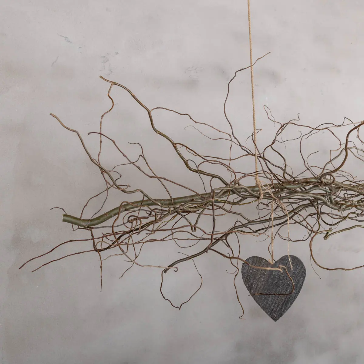 Dieser einzigartige Weidenanhänger bringt einen verspielten und natürlichen Touch in deine Einrichtung. Die gewundene Form der Weidenzweige sorgt für einen lebendigen und dekorativen Effekt und verleiht jedem Anhänger ein etwas anderes Aussehen. Sie eignet sich perfekt als Blickfang über einem Esstisch, einem Sideboard oder vor dem Fenster.