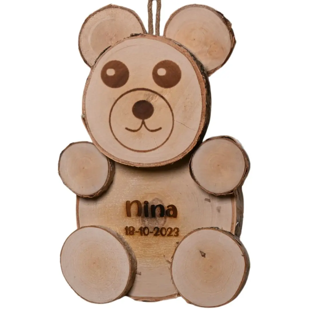 Jeder Bär wird mit deinem eigenen Namen, Datum, Text oder Symbol deiner Wahl personalisiert. Die Gravur wird sorgfältig in das Holz eingebrannt, so dass der Aufdruck dauerhaft und stilvoll sichtbar bleibt.