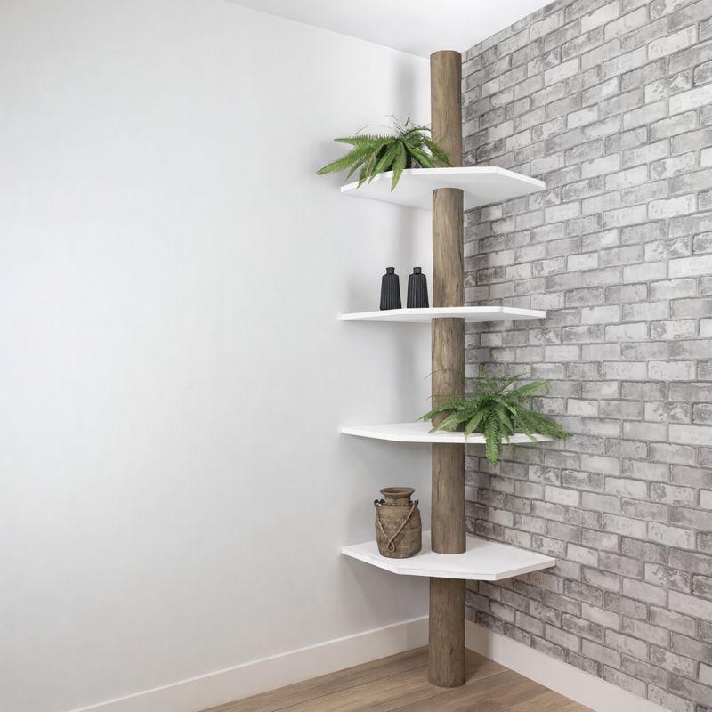 Baumstamm-Eckregal | Javi | Grey/Weiß | 85x60x250