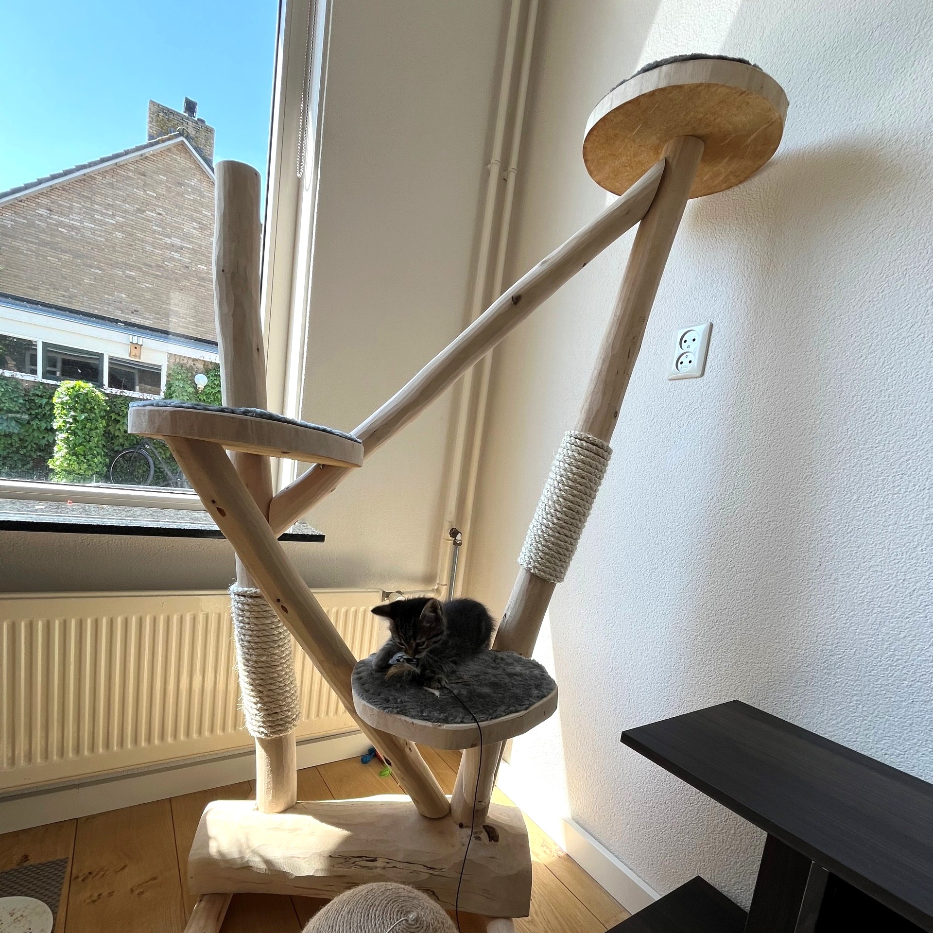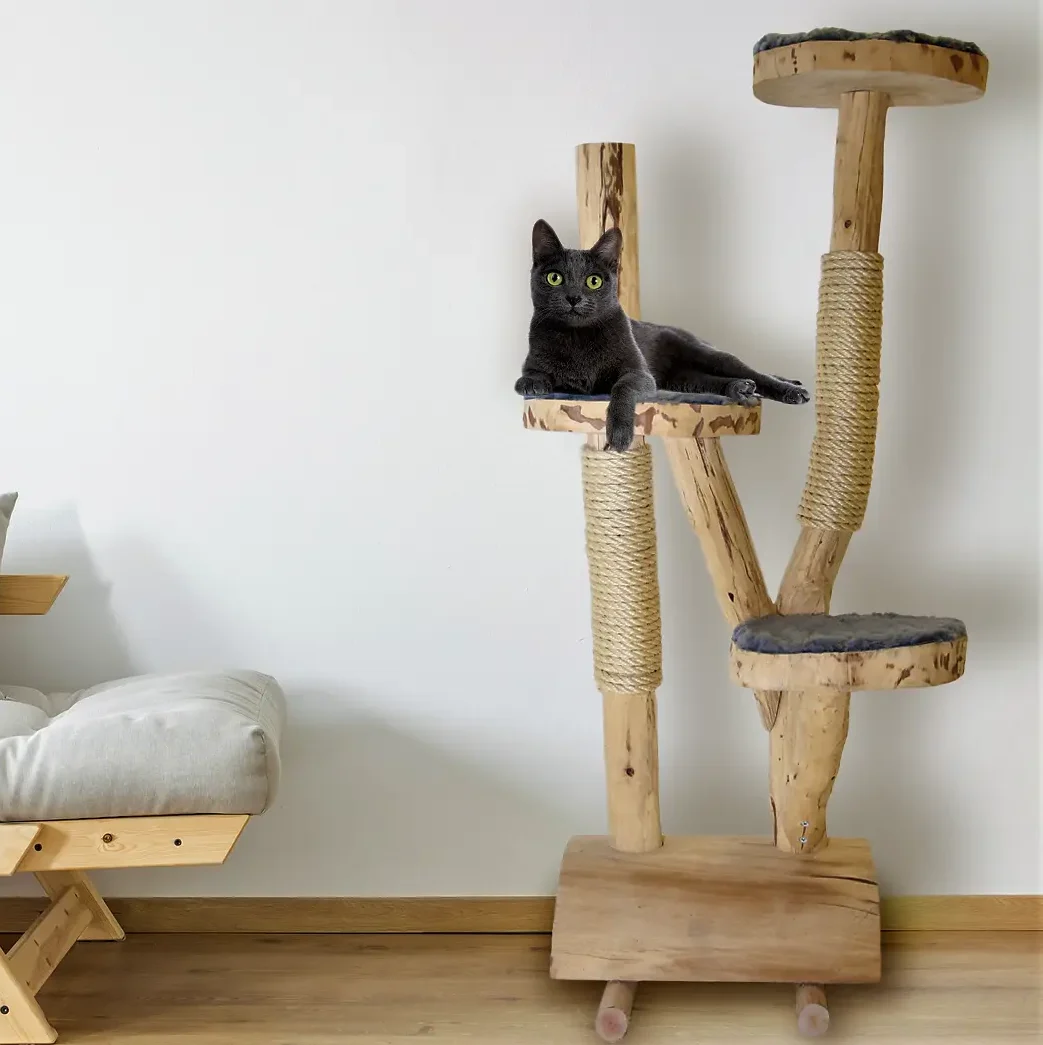 Die Stämme sind stabil und teilweise mit natürlichem Sisalseil umwickelt, damit deine Katze ihre Krallen gesund halten kann. Die geräumigen Ablagen bieten viel Platz zum Klettern, Spielen und Entspannen.