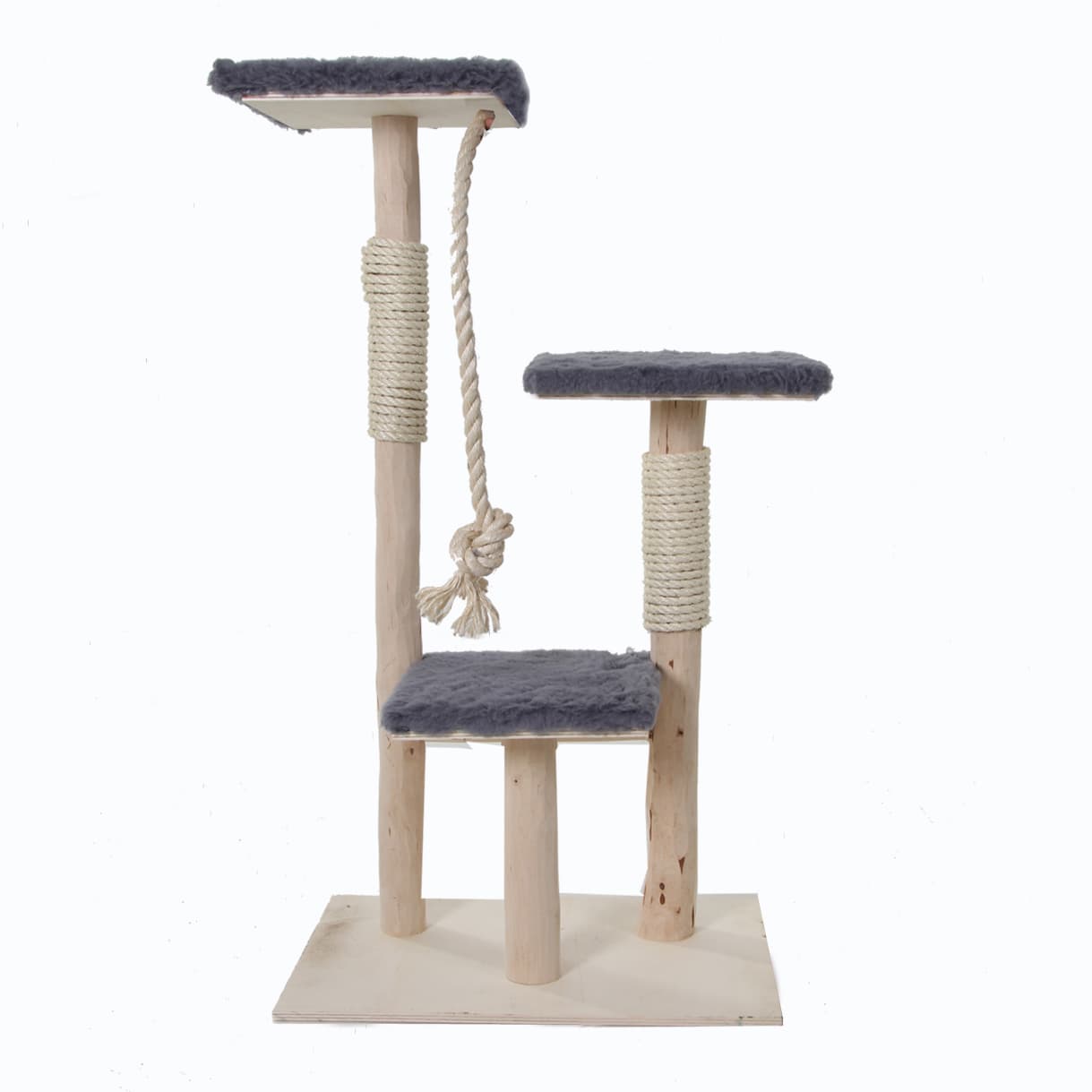 Die Stämme sind teilweise mit Sisalseilen versehen, damit deine Katze ihre Krallen richtig pflegen kann. Die Plattformen bieten einen schönen Platz zum Schlafen, während der robuste Sockel dafür sorgt, dass der Pfosten stabil bleibt.