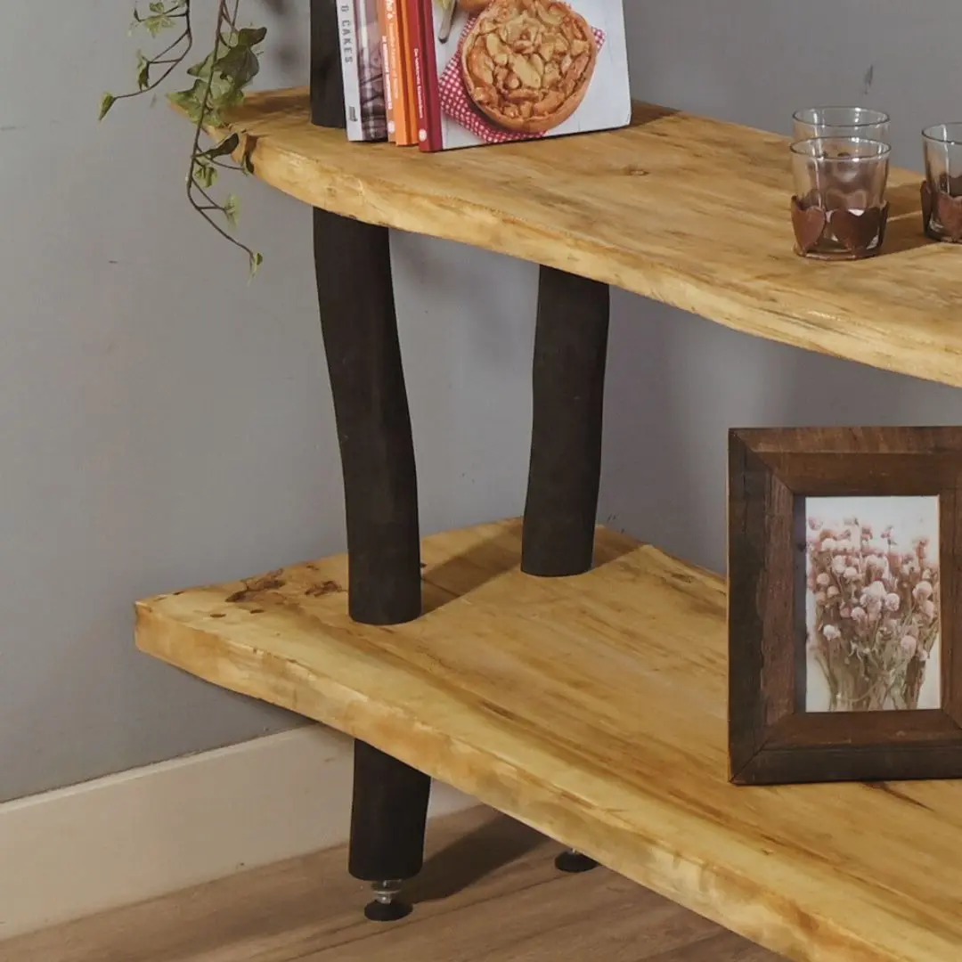 Baumstamm-Raumteiler Kiran mit schwarzen Stämmen und 5 geschliffenen Brettern, die mit einem Old Naturel-Öl behandelt wurden.