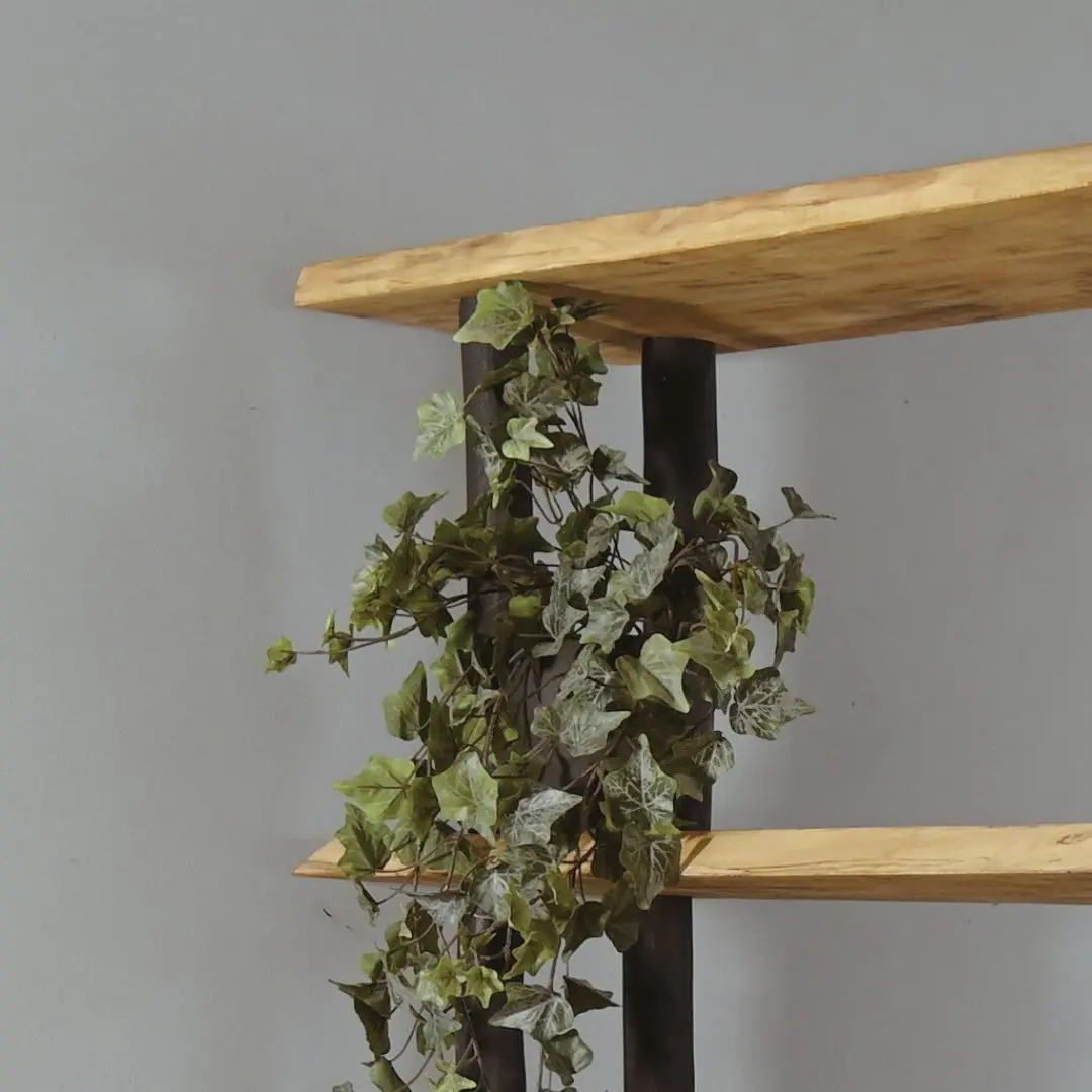 Dieser hohe Raumteiler bringt natürliche Ruhe und ein starkes grafisches Linienspiel zusammen. Schlanke, tiefschwarze Baumstämme bilden die vertikale Struktur; 5 massive Regalböden aus geschliffenem Laubholz, die mit einem Old Naturel-Öl behandelt wurden, sorgen für Wärme und Funktionalität.