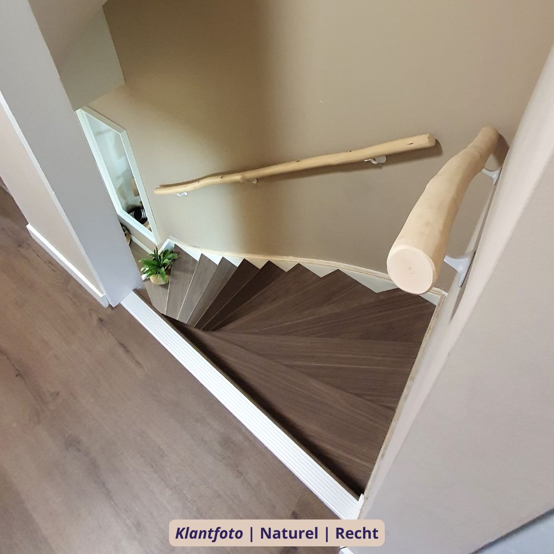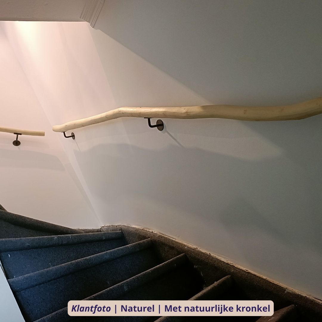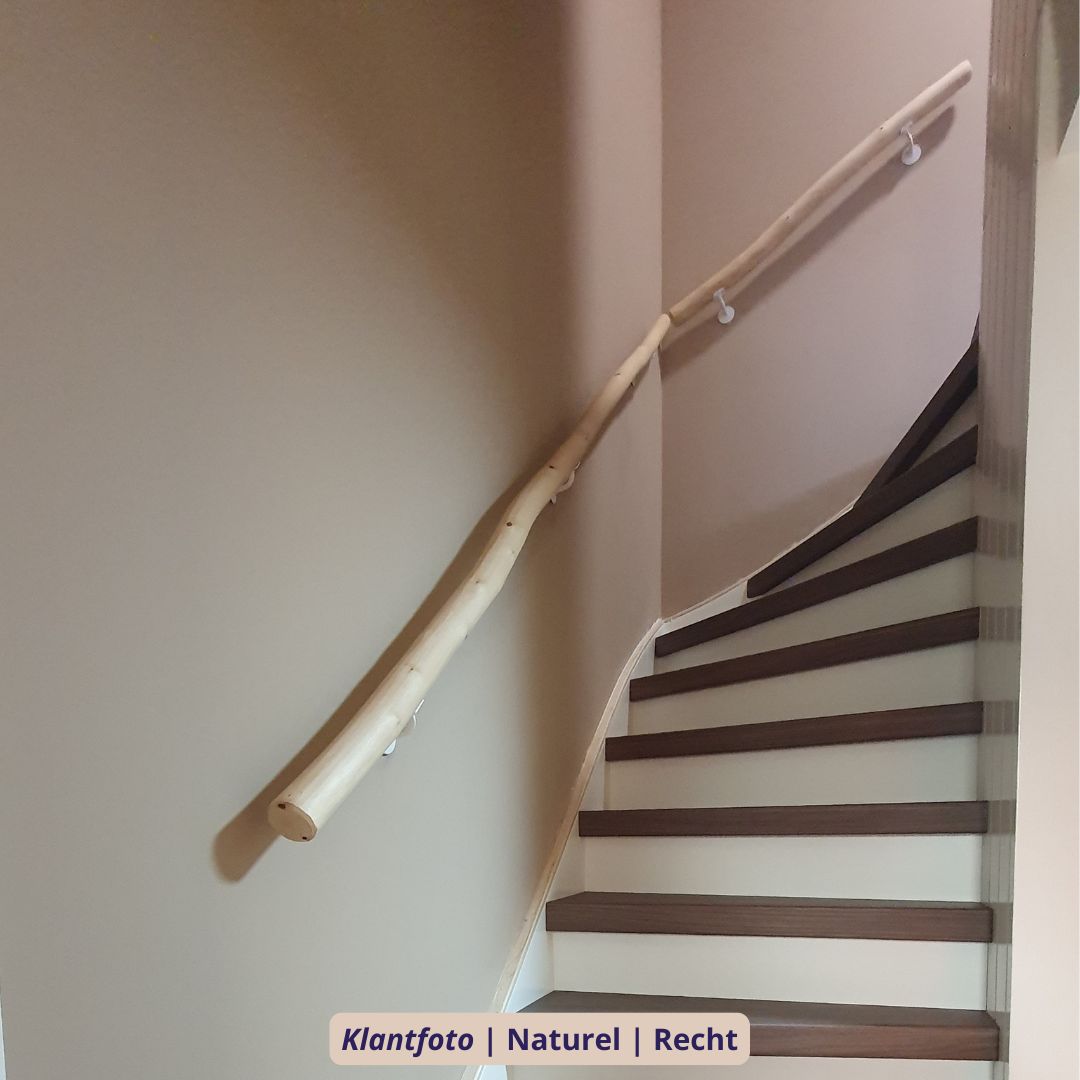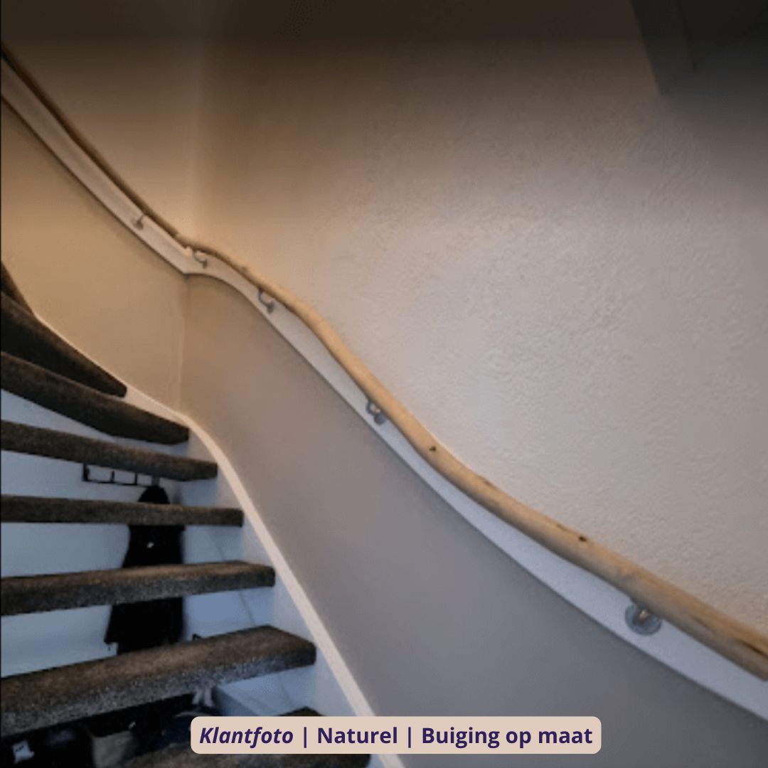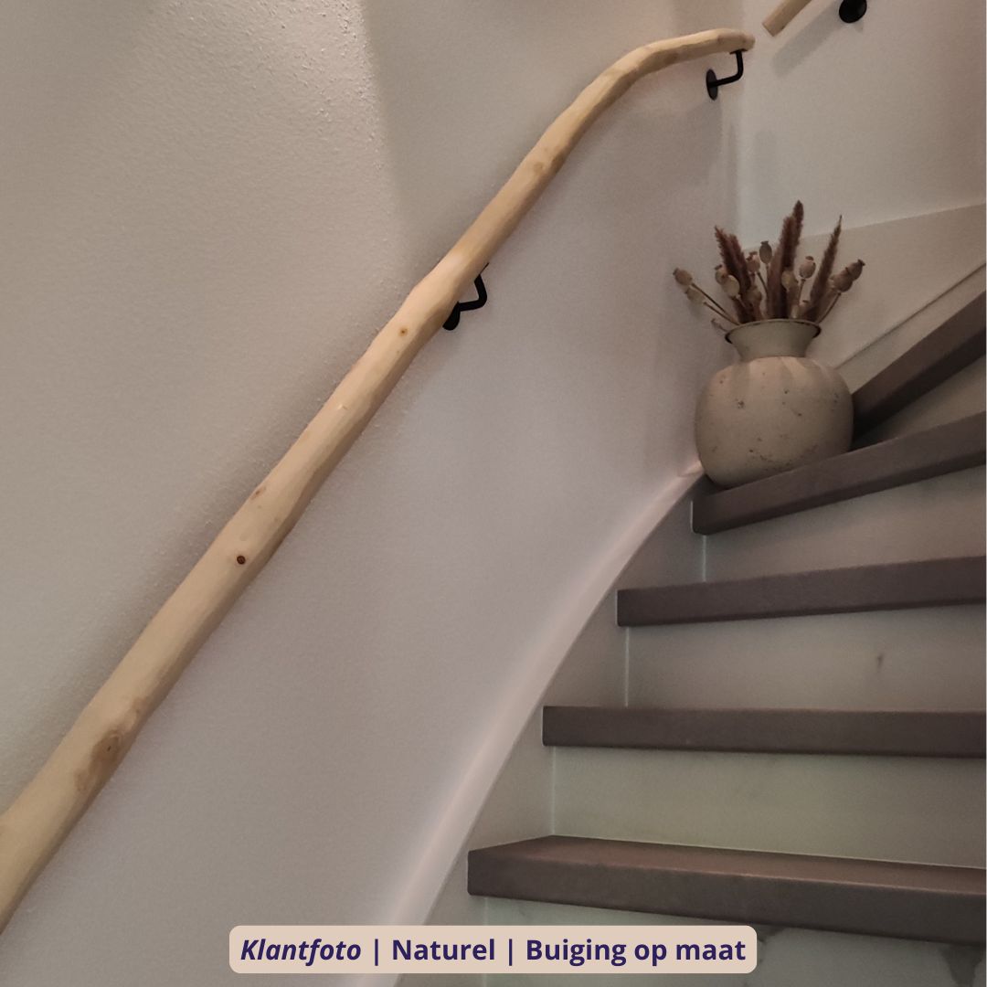 Der gerade Treppengeländer wurde sorgfältig aufgrund seiner ruhigen Form ausgewählt, bleibt aber immer leicht organisch – niemals völlig kerzengerade, denn jeder Stamm behält seinen natürlichen Charakter. Die gewundene Variante wurde aufgrund ihrer besonders schönen Biegungen und verspielten Linien ausgewählt und ist ideal für alle, die den Charme der reinen Natur noch stärker betonen möchten. Für Treppen mit einer besonderen Form kann der Handlauf auch mit einer maßgeschneiderten Biegung geliefert werden, sodass er perfekt passt.