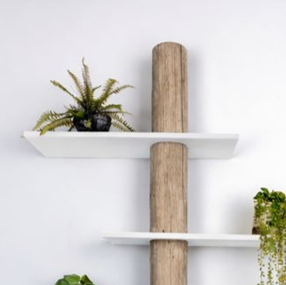 Baumstamm-Wandregal mit versetzte Regalböden | Javi | Grey/Weiß | 110x30x250