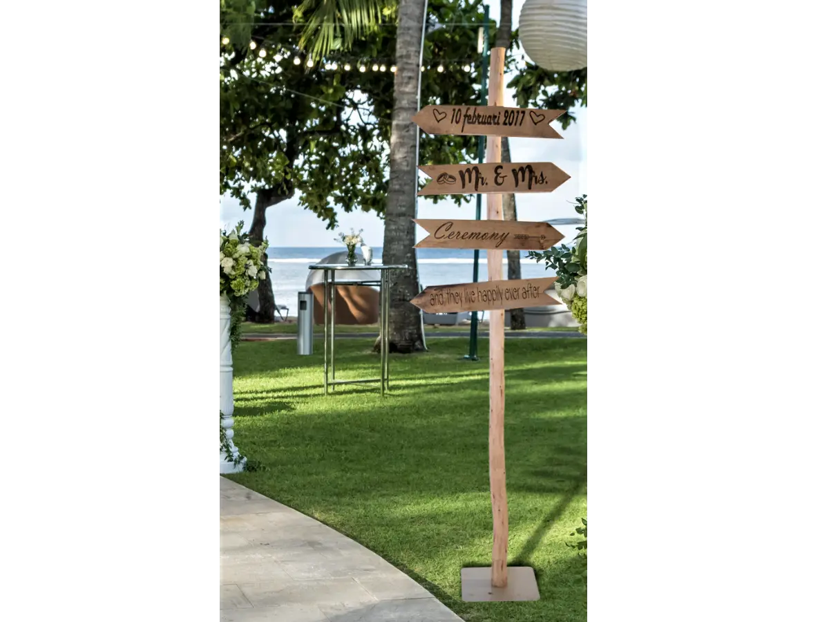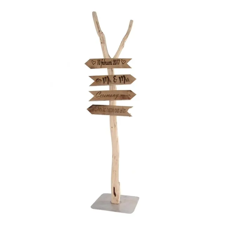 Dieser Wegweiser aus Holz ist ein stimmungsvoller und persönlicher Blickfang für Hochzeiten, Feste, Veranstaltungen oder als dekoratives Element im Garten oder auf dem Hof. Der Wegweiser wird standardmäßig mit zwei Holzpfeilen geliefert, ist aber auch mit mehreren Pfeilen nach Wunsch erhältlich.