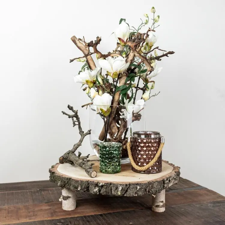 Dieser charmante Birkenstammtisch mit einem Durchmesser von ca. 15 cm und einer Höhe von 5 cm ist die perfekte Basis, um deine schönsten Dekorationen zu präsentieren. Das natürliche Birkenholz verleiht ihm einen warmen und rustikalen Look, sodass der Tisch wunderbar mit Kerzen, Vasen, Pflanzen oder saisonalen Dekorationen kombiniert werden kann.
