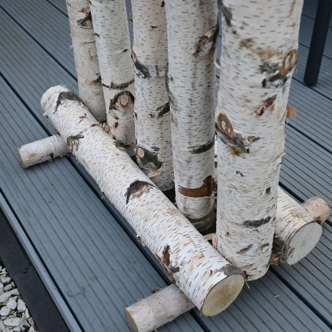 Die helle Farbe des Birkenholzes schafft eine ruhige, skandinavische Atmosphäre – ideal für den Einsatz im Wohnzimmer, im Wintergarten oder draußen auf der Terrasse oder im Garten. Dank der robusten Konstruktion ist der Raumteiler stabil, während die offene Struktur für Licht und Luftigkeit sorgt.