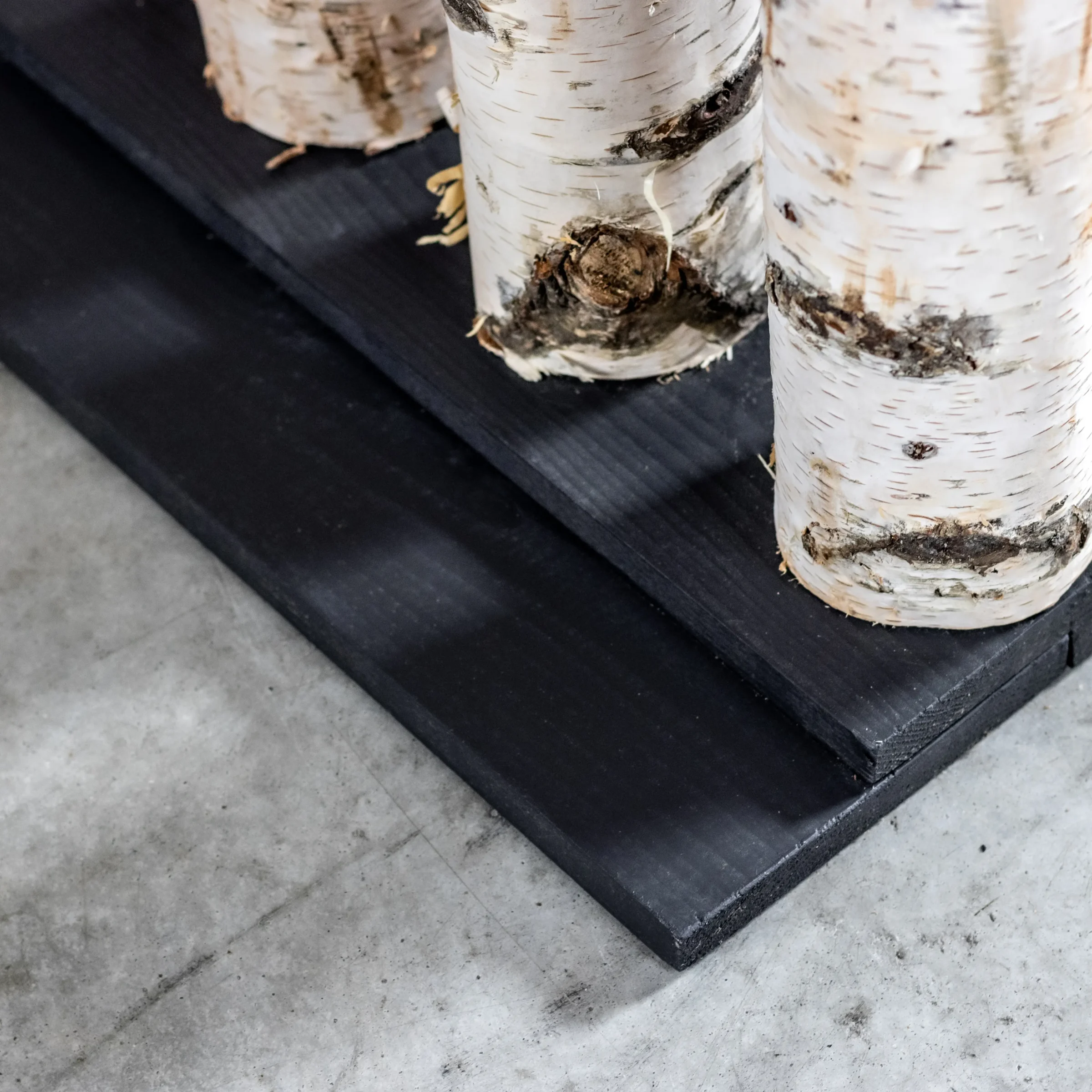 Der Raumteiler Thor bringt den robusten Charme von echten Birkenstämmen mit Rinde und dem modernen Look eines schwarzen Fußes zusammen. Das macht ihn zu einem perfekten Blickfang für alle, die einen natürlichen Look mit einem coolen Akzent mögen.