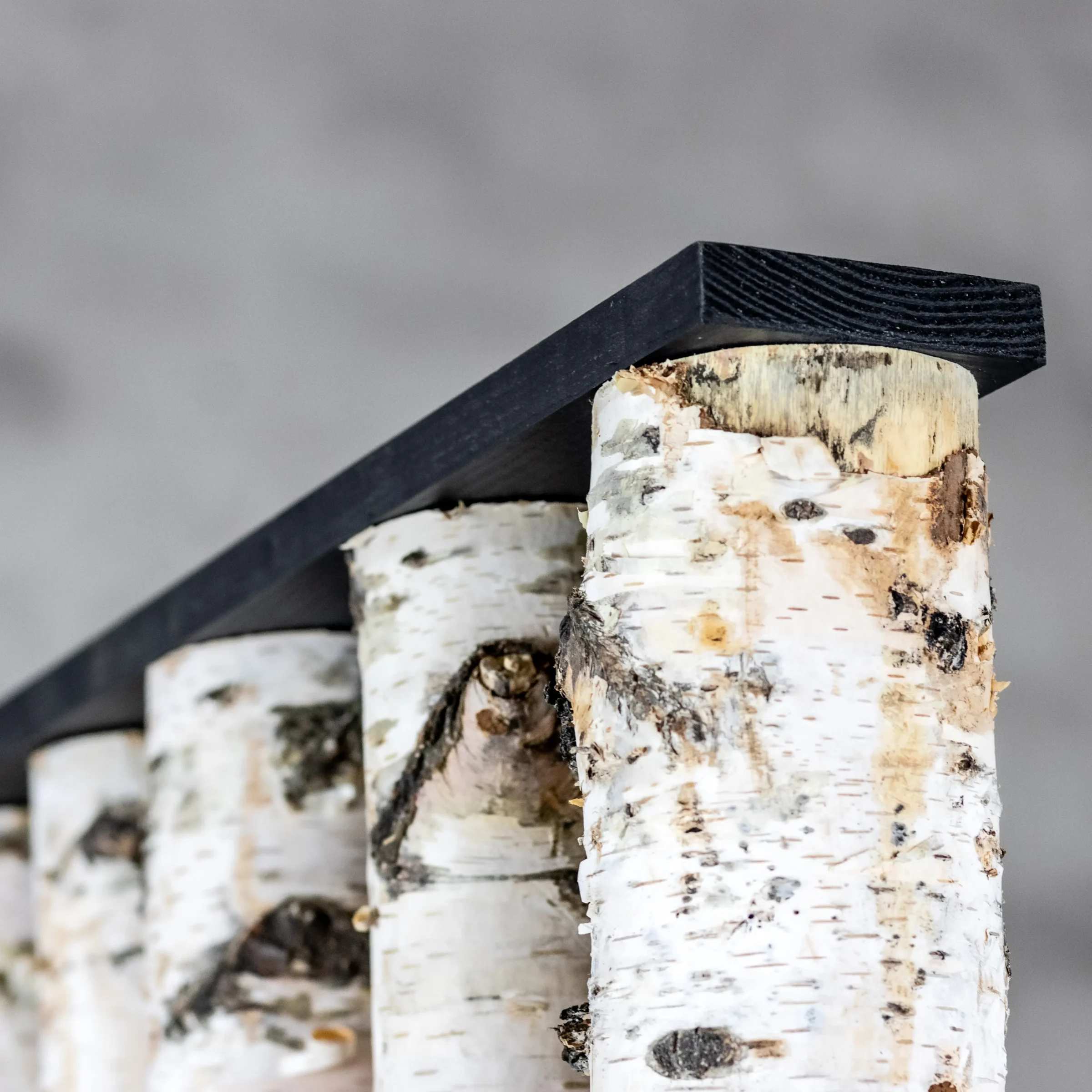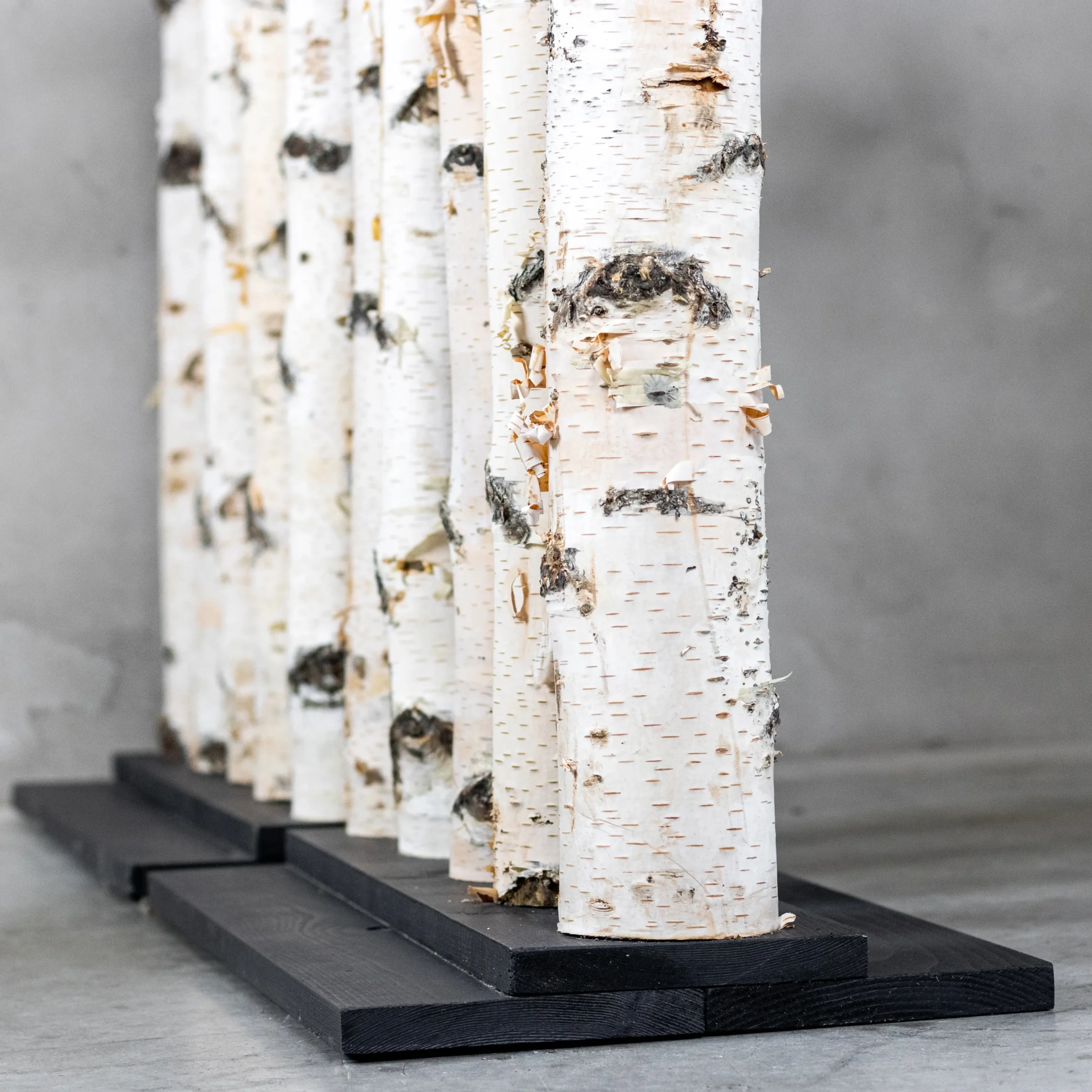 Der Raumteiler Thor bringt den robusten Charme von echten Birkenstämmen mit Rinde und dem modernen Look eines schwarzen Fußes zusammen. Das macht ihn zu einem perfekten Blickfang für alle, die einen natürlichen Look mit einem coolen Akzent mögen.