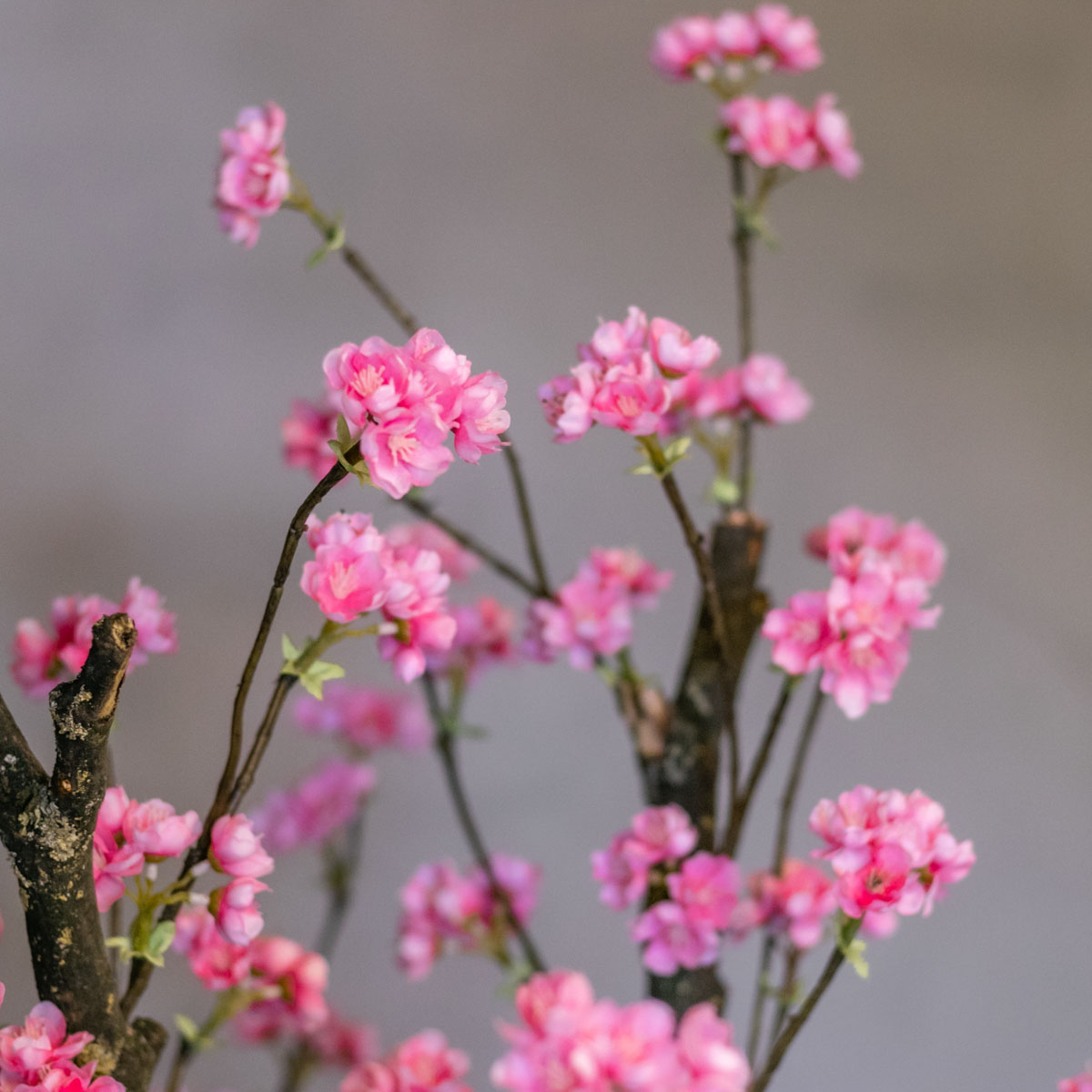 Der Blütenbaum wird standardmäßig ohne Topf geliefert und die Zweige sind als Set miteinander verbunden, sodass du ihn einfach in einen Übertopf deiner Wahl stellen kannst. Verwende zum Beispiel Sand, Kieselsteine oder Rinde, um den Baum fest zu verankern und sofort ein natürliches Aussehen zu schaffen.