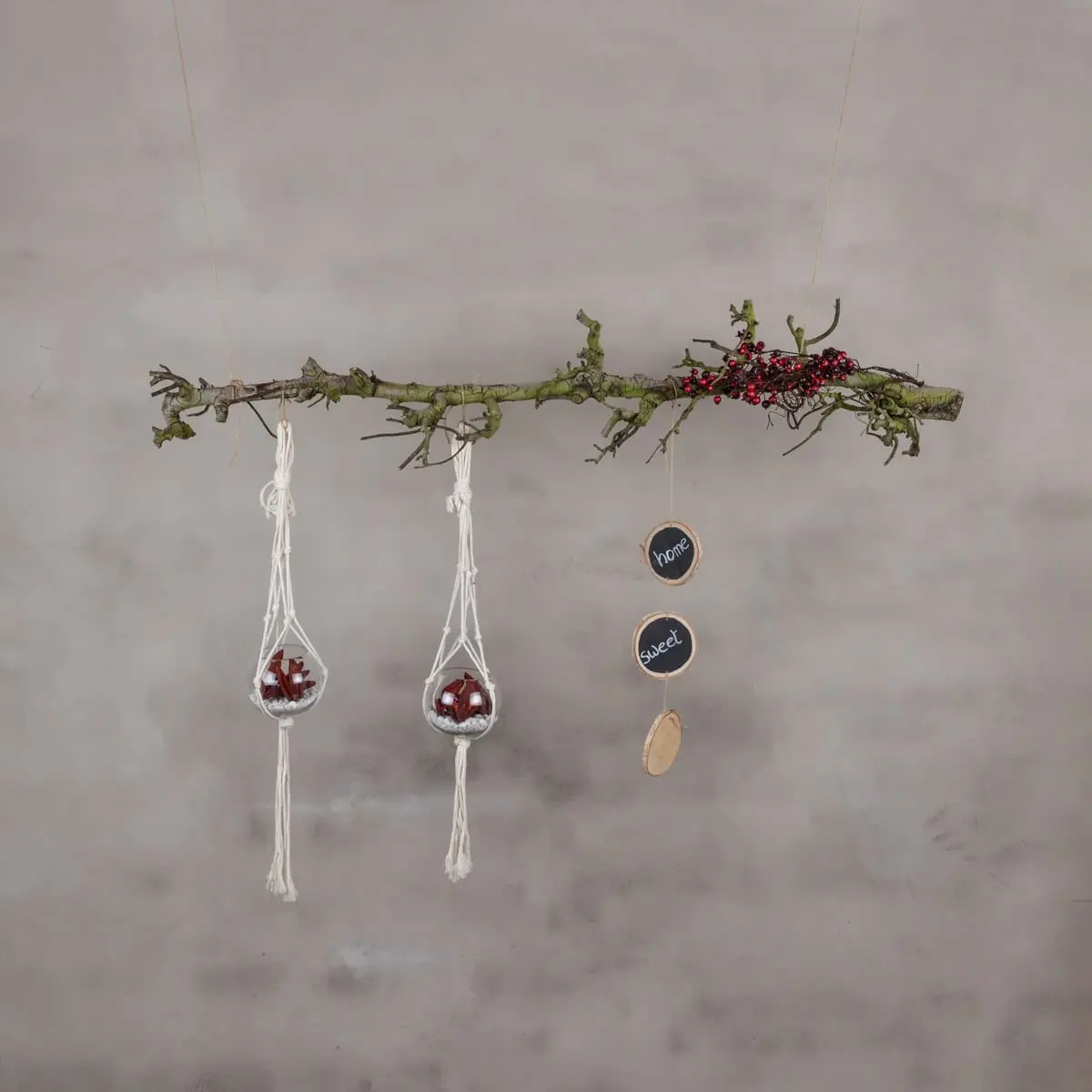 Der Anhänger ist vielseitig einsetzbar: Hänge ihn vor ein Fenster, über ein Sideboard oder an die Wand und schmücke ihn mit Dekorationen deiner Wahl. Zum Beispiel mit Holzherzen, Trockenblumen, Hängepflanzen, Weihnachtskugeln oder Lichtern. So kannst du ganz einfach zu jeder Jahreszeit oder zu jedem Anlass einen neuen Look kreieren.