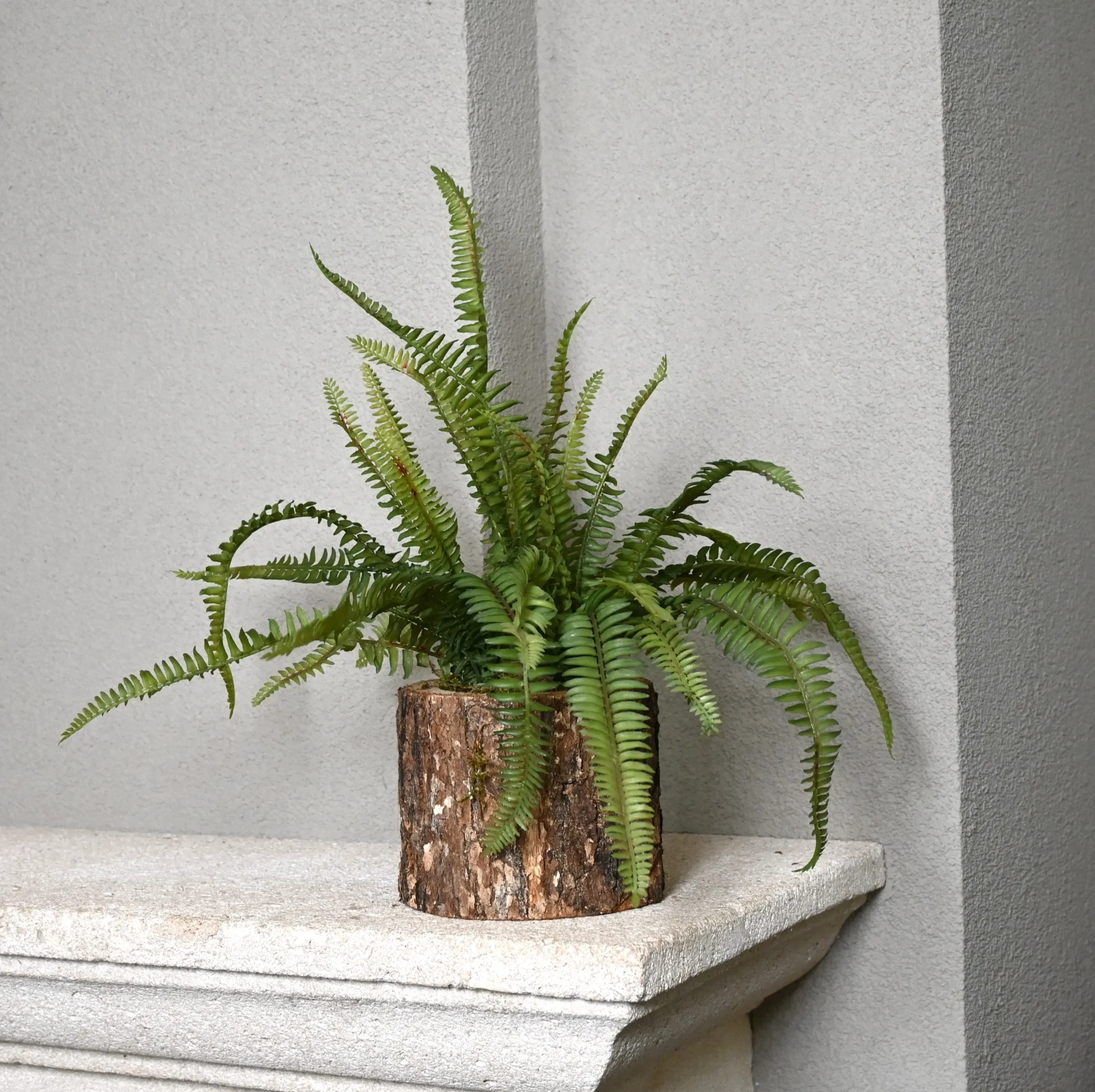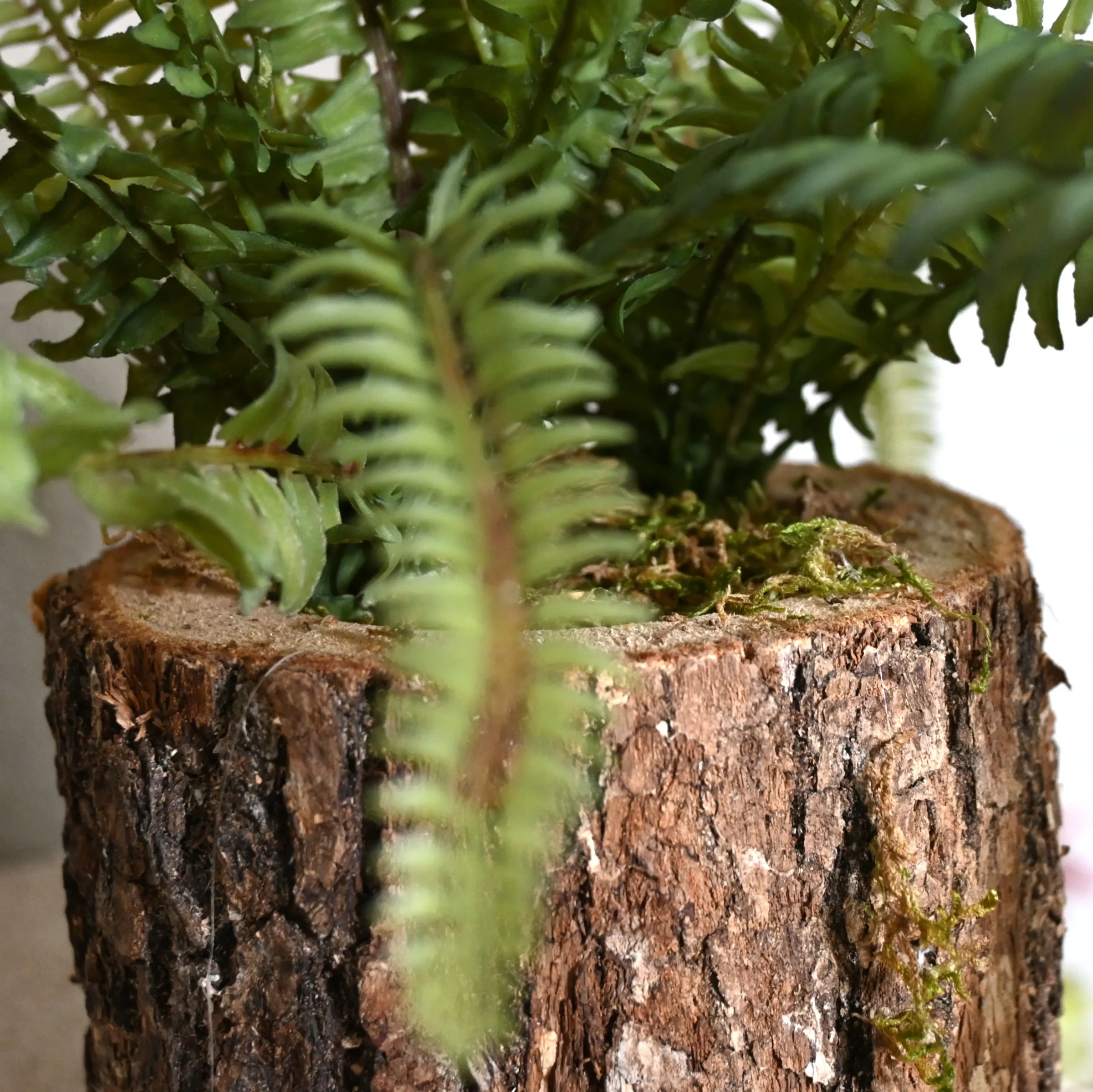 Der Oak Log Fern Forest bringt ein bisschen Waldcharakter in dein Interieur. Die robuste Basis aus echtem Eichenholz wird mit einem üppigen Strauß von Farnblättern kombiniert, was einen vollen und natürlichen Look ergibt.