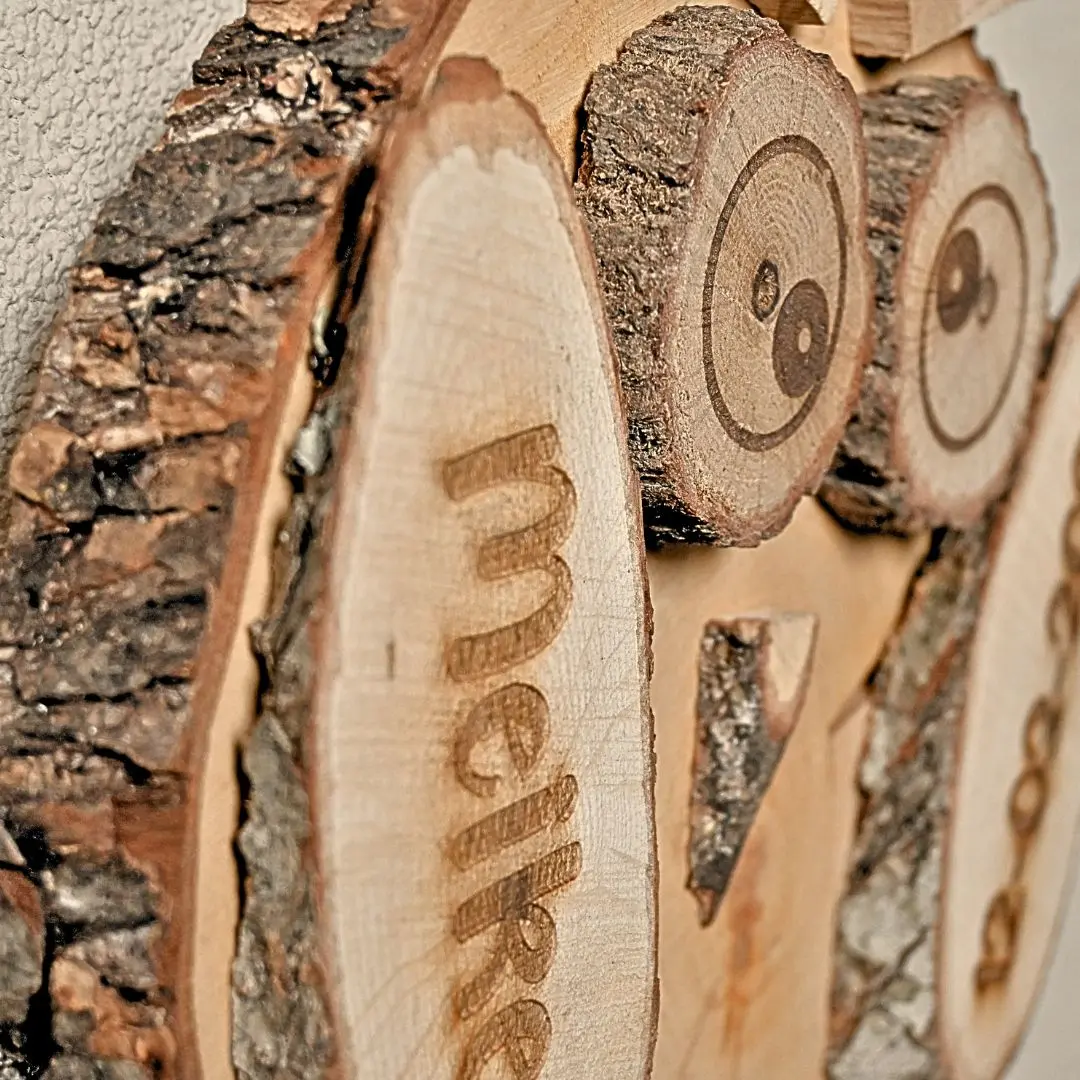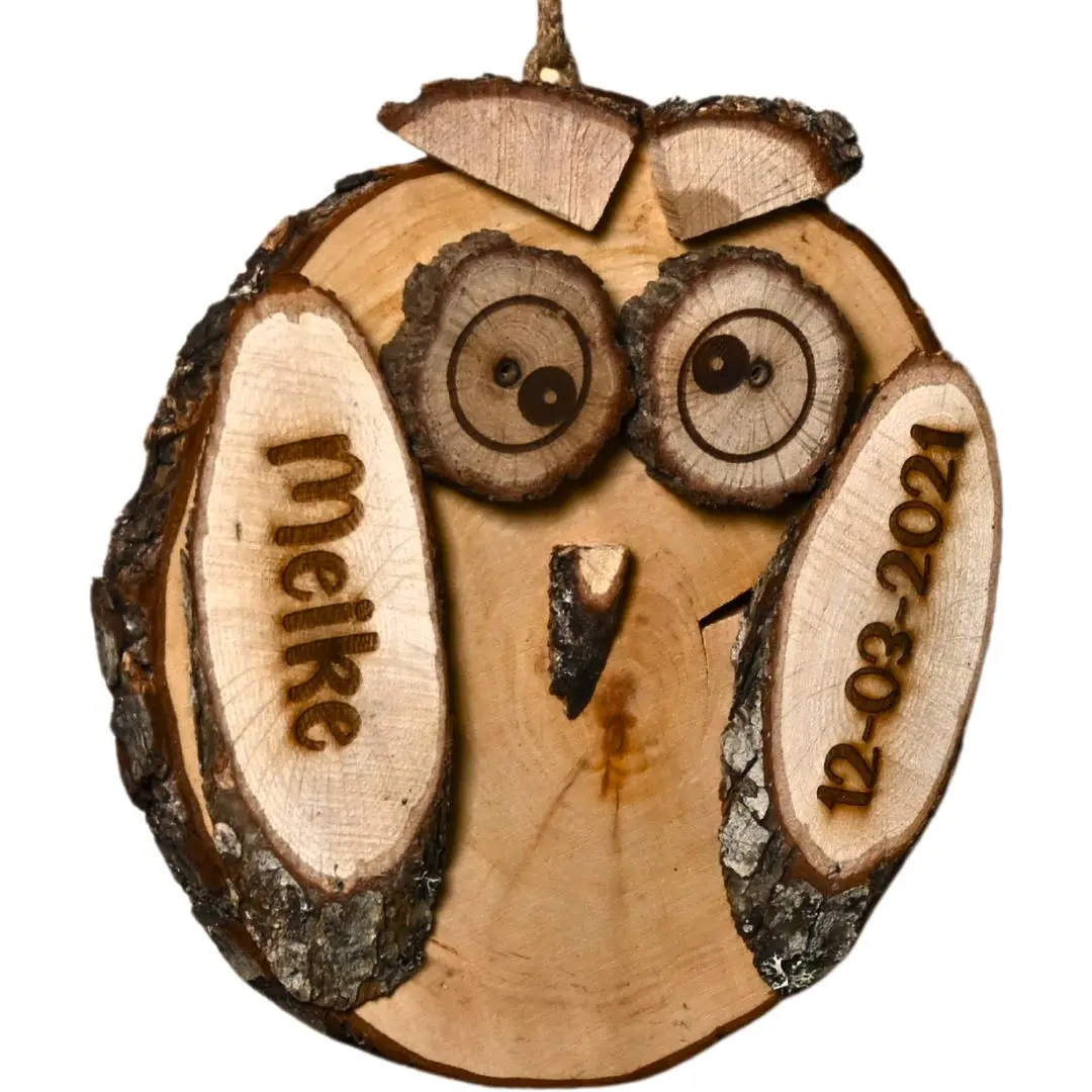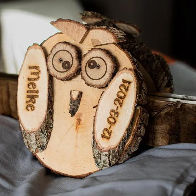 Jede Eule wird mit deinem eigenen Namen, Datum, Text oder Symbol deiner Wahl personalisiert. Die Gravur wird sorgfältig in das Holz eingebrannt, sodass der Aufdruck dauerhaft und stilvoll sichtbar bleibt.