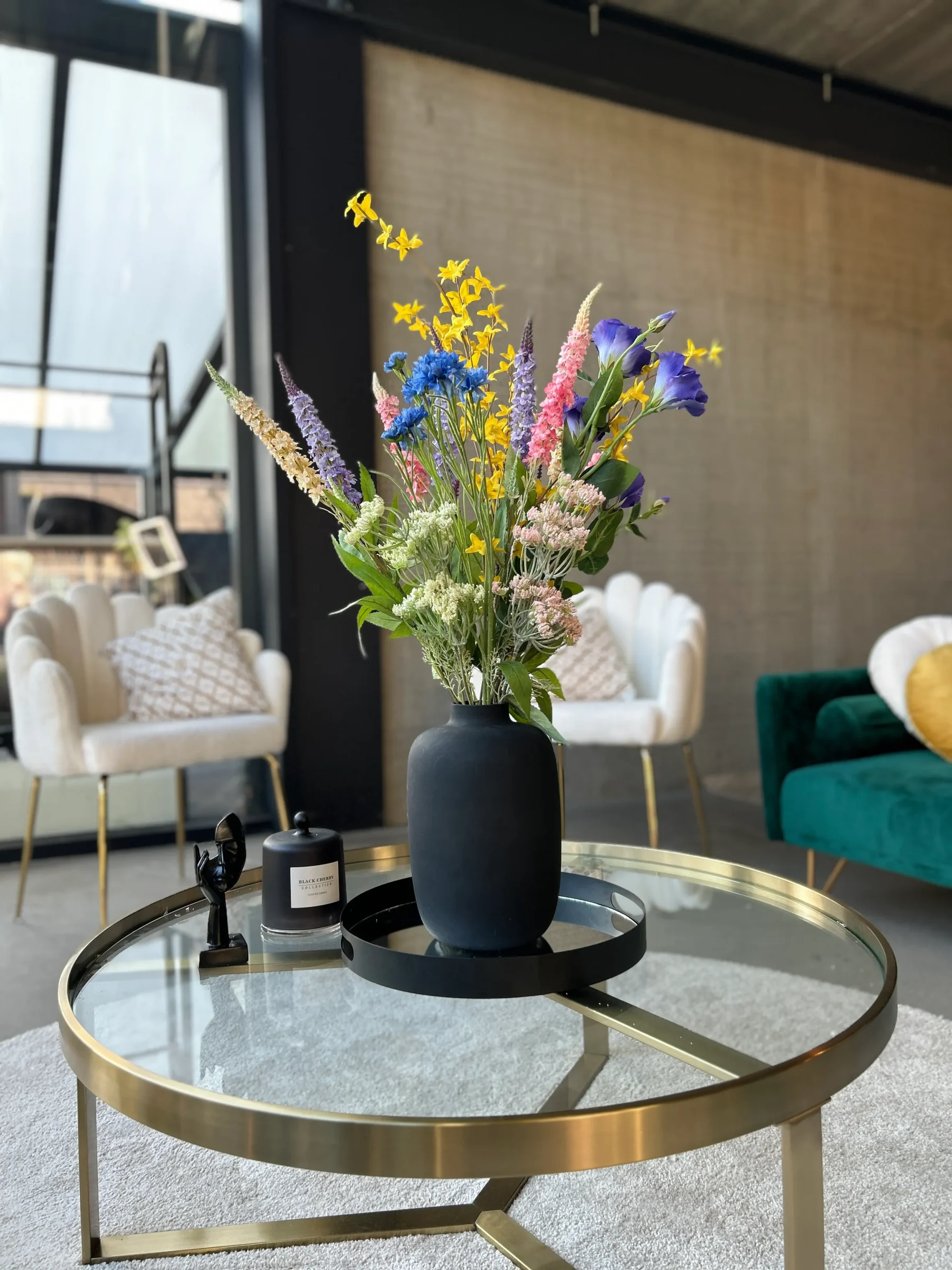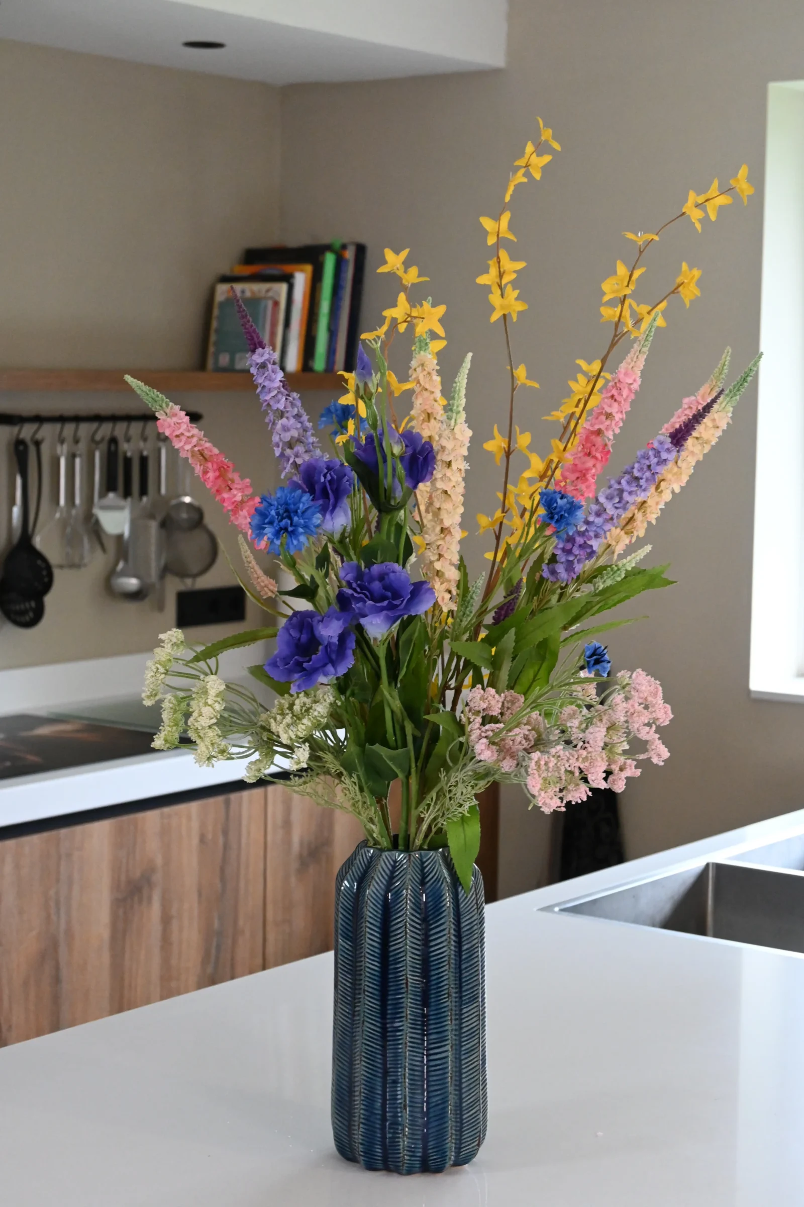 Mit einer Höhe von 80 cm ist dieser künstliche Strauß ideal für eine große Vase auf dem Boden, ein Sideboard oder als auffälliger Mittelpunkt in einem Empfangsbereich. Dank seiner hochwertigen Verarbeitung genießt du die Schönheit der Blumen ohne Pflege, immer farbenfroh, immer frisch.