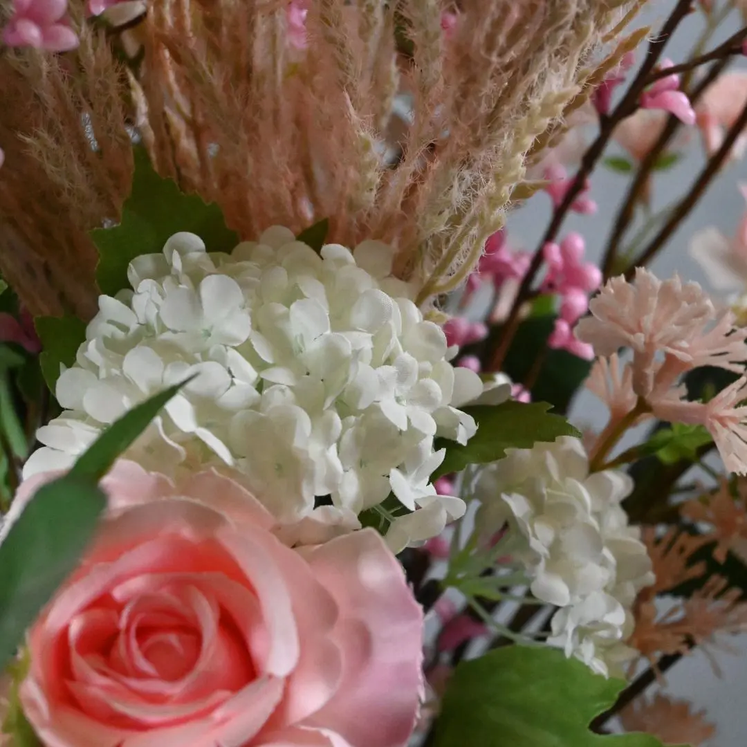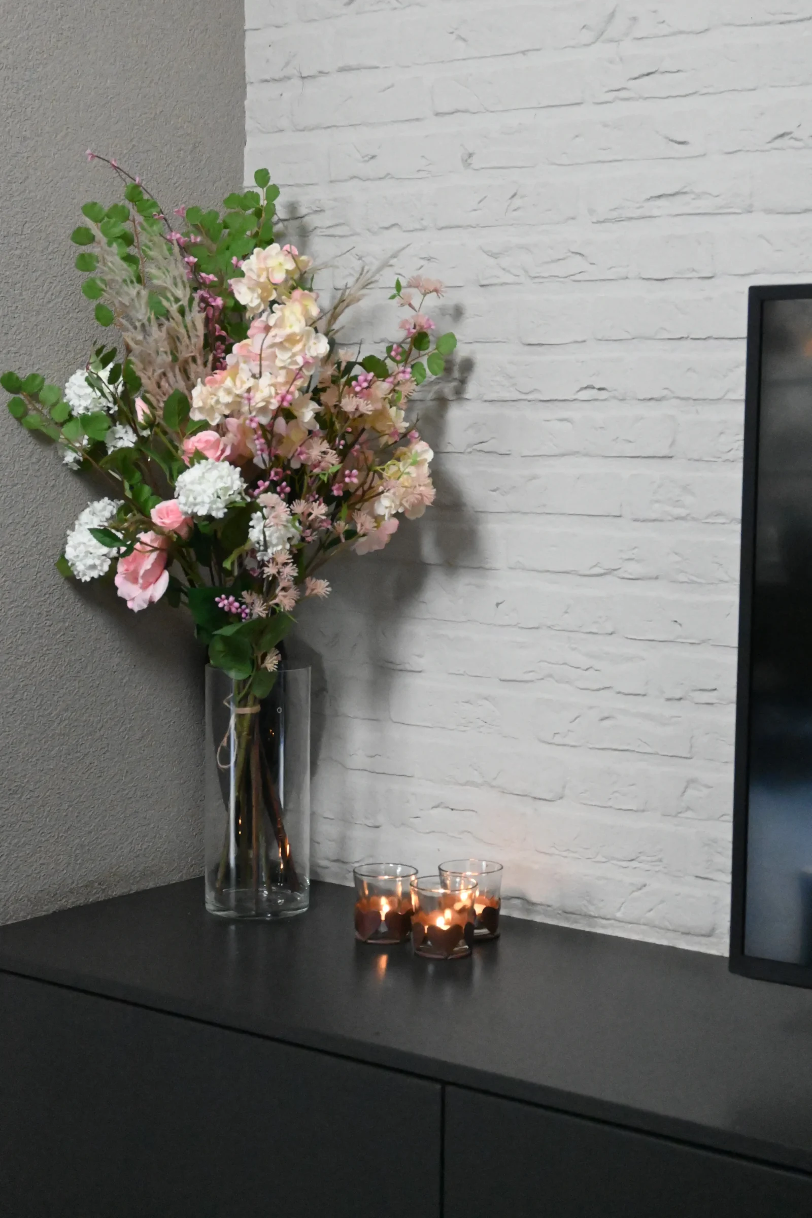 Der künstliche Blumenstrauß Morning Tau bringt eine frische, leichte Atmosphäre in dein Zuhause. Die Kombination aus sanften Pastelltönen wie Rosa, Pfirsich und Creme mit frischem Grün und luftigen Gräsern schafft einen eleganten, natürlichen Look. Dieser Strauß strahlt das Gefühl eines frühen Frühlingstages aus und verleiht jedem Interieur einen Hauch von Ruhe und Raffinesse.