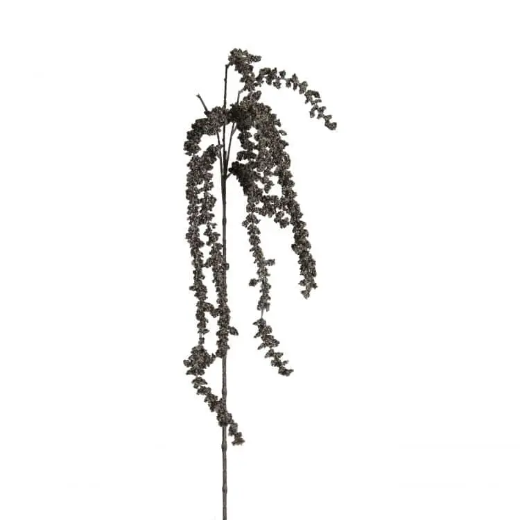 Dieser künstliche Rohrkolben in stilvollem Grau hat eine Länge von 100 cm und ist mit seinen langen, anmutig herabhängenden Blütenbüscheln ein echter Blickfang. Der Zweig wirkt verspielt und elegant und eignet sich perfekt, um einem Blumenarrangement Höhe und Volumen zu verleihen oder um ihn lose in eine hohe Vase zu stellen.