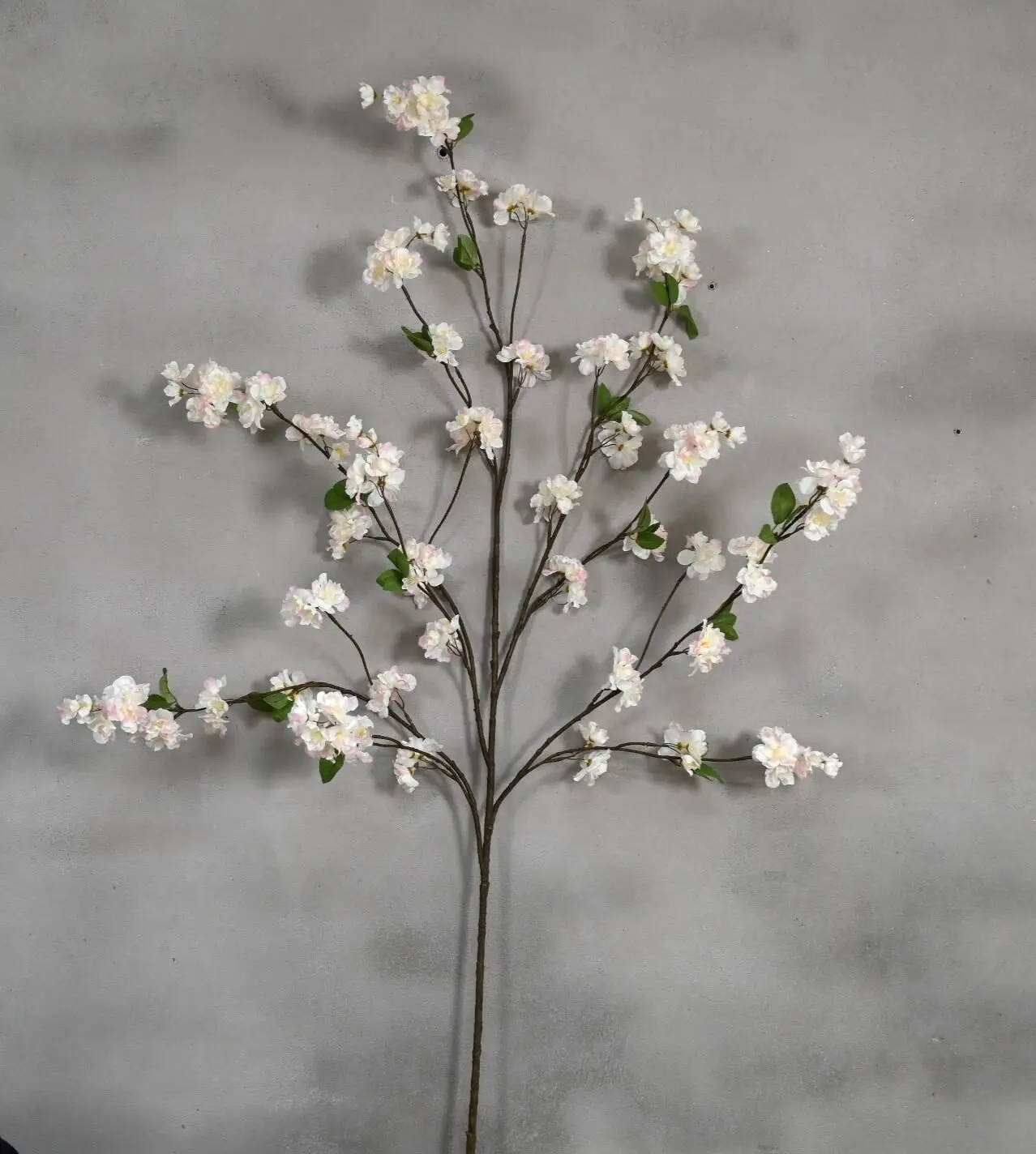 Dieser volle 110 cm lange Kunstprunusblütenzweig bringt sofort eine üppige Frühlingsatmosphäre in dein Zuhause. Der reich gefüllte Zweig mit zahlreichen Blütenblättern und weißer Blüte mit einem Hauch von Rosa wirkt natürlich und elegant.