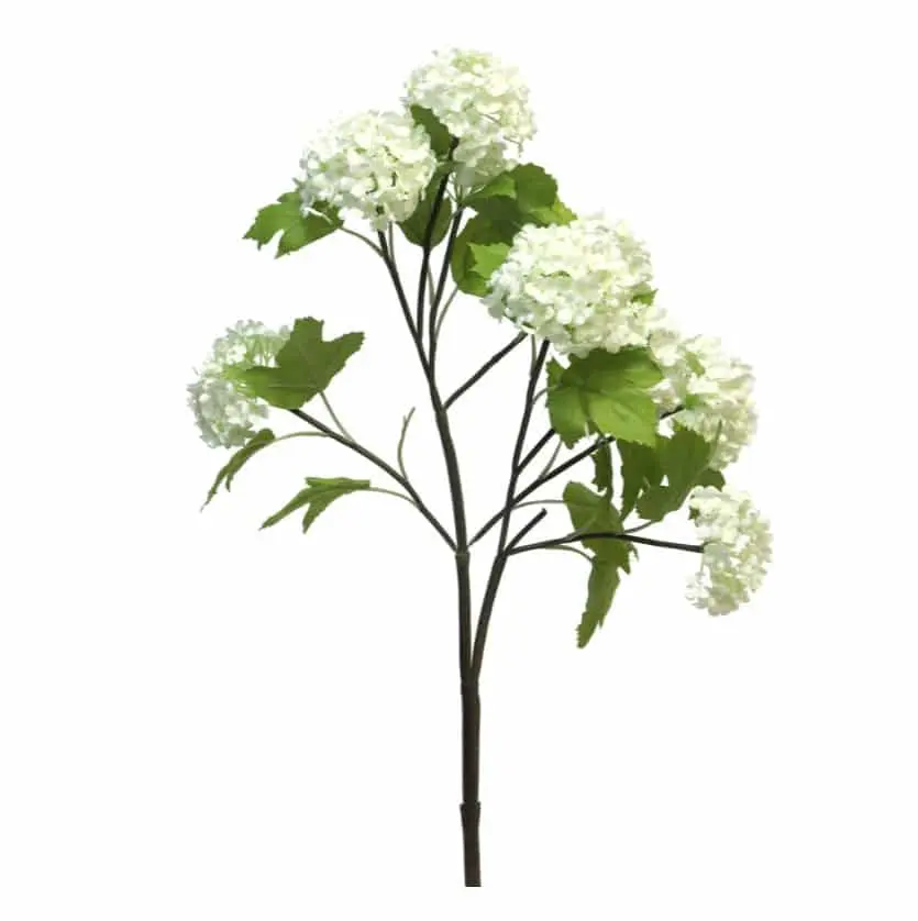 Diese künstliche Schneeball-Hortensienblüte in Weiß mit einer Größe von 75 cm strahlt Frische und Eleganz aus. Die gefüllte Blüte mit ihrer natürlichen Form und den subtilen Details sieht besonders realistisch aus und bleibt über Jahre hinweg schön.