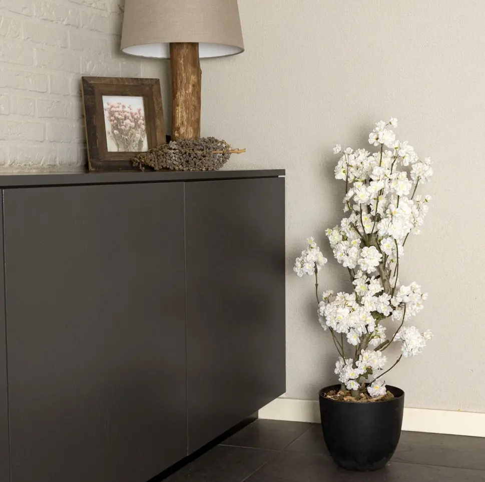 Hol dir die Schönheit des Frühlings mit dem künstlichen Blütenarrangement Juliette nach Hause. Die weißen Blütenzweige sehen frisch und elegant aus und bringen einen beruhigenden Akzent in dein Zuhause. Dank der echt aussehenden Blumen sieht dieses Arrangement aus, als würden die Blüten gerade erst blühen.