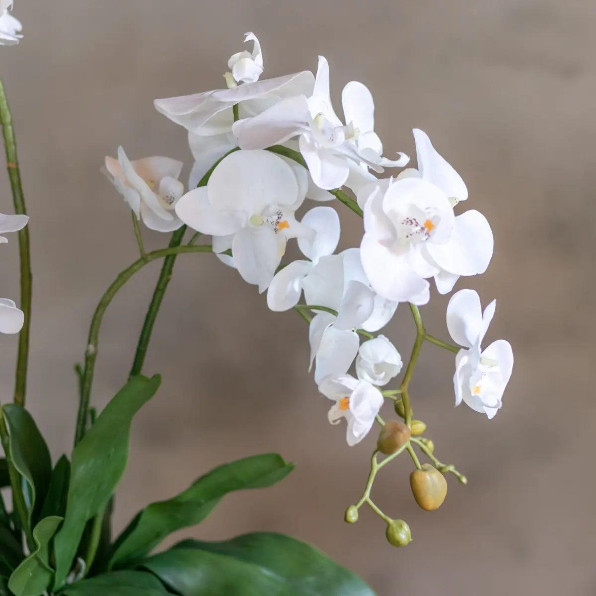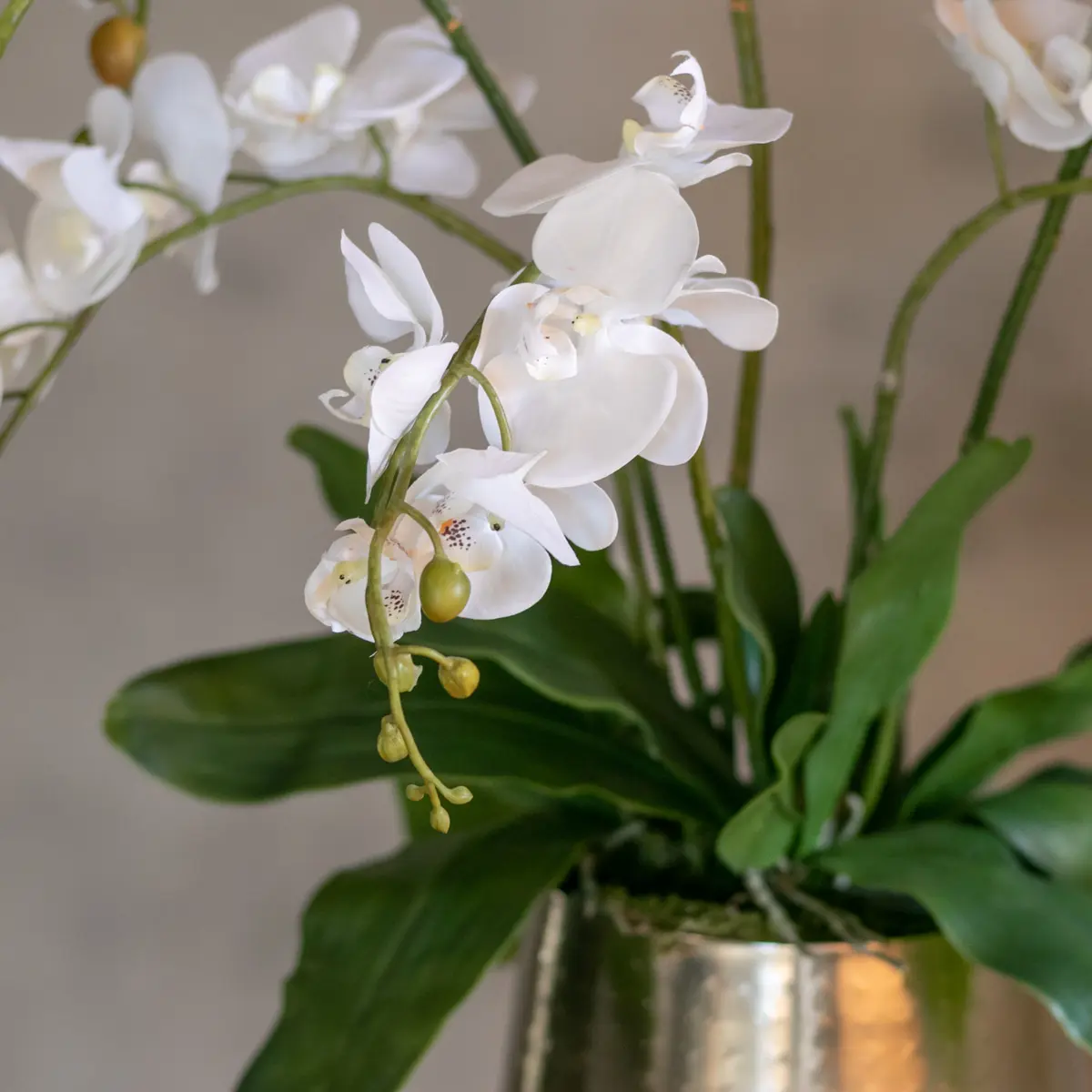 Bring pure Eleganz in dein Zuhause mit diesem stylischen Kunstblumenarrangement Kyara. Die wunderschönen weißen Orchideen strahlen Ruhe, Frische und Luxus aus und machen jeden Raum zu einem Ort der Gelassenheit.