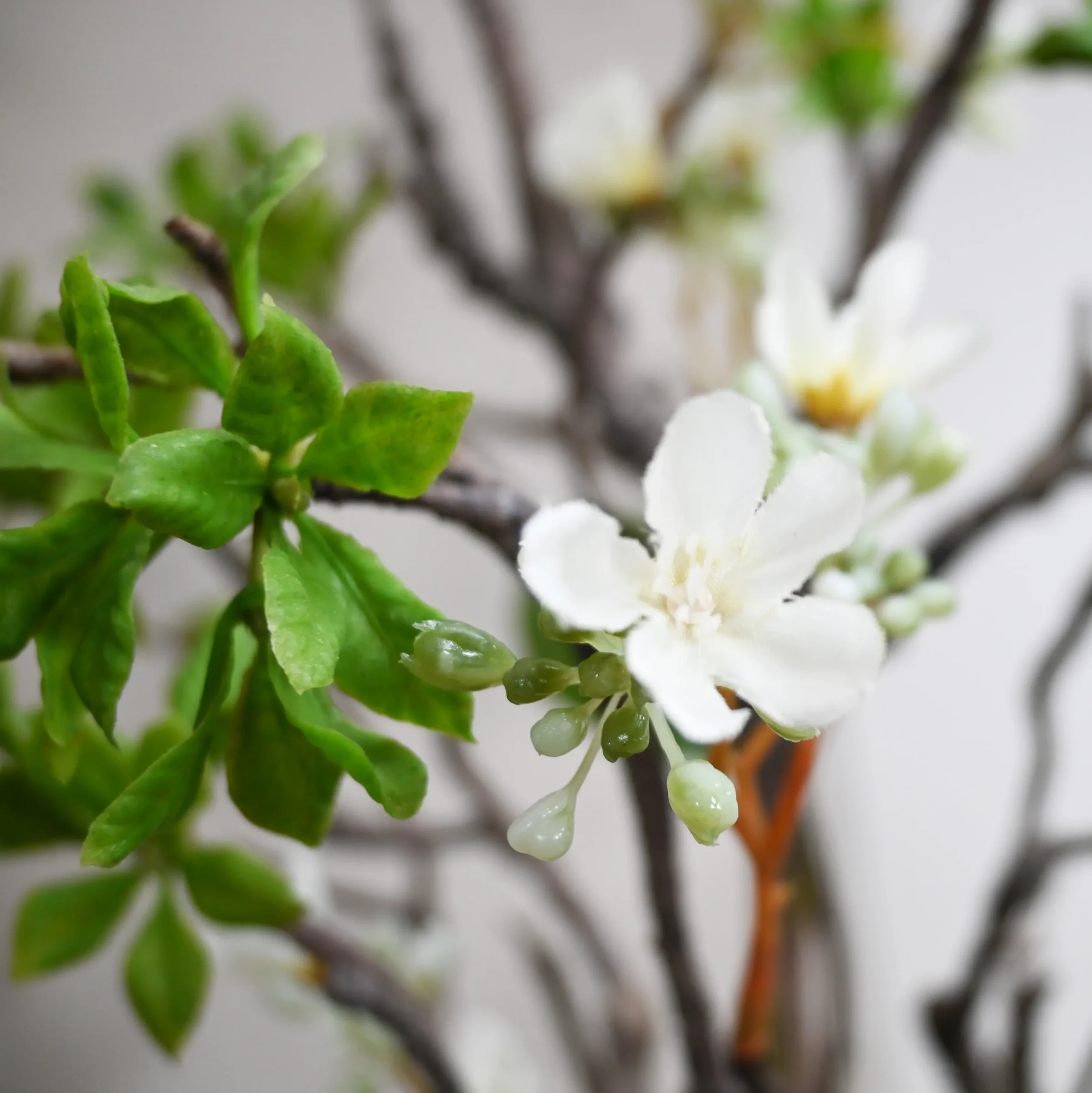 Hol dir mit diesem wunderschönen Kunstblumenarrangement Maya das ganze Jahr über den Frühling ins Haus. Die eleganten Zweige mit ihren frischgrünen Blättern und zarten weißen Blüten sorgen für einen natürlichen und frischen Look, der sowohl in ein modernes als auch in ein ländliches Interieur perfekt passt.