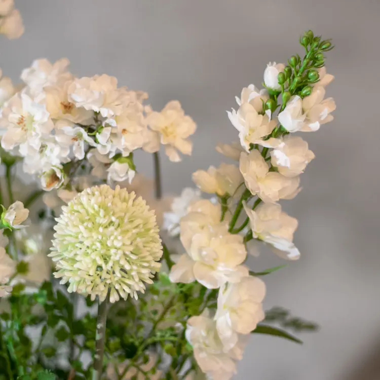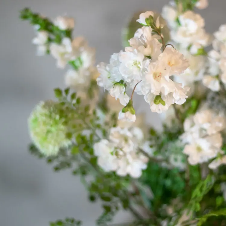 Das Kunstblumenarrangement Ophelia bringt eine frische und raffinierte Atmosphäre in dein Zuhause. Die weißen Blütensträuße zusammen mit sanften Grüntönen und verspielten Farnblättern sorgen für ein luftiges und natürliches Gesamtbild. Dank der reichhaltigen Zusammensetzung sieht dieses Blumenarrangement sehr natürlich und lebensecht aus.