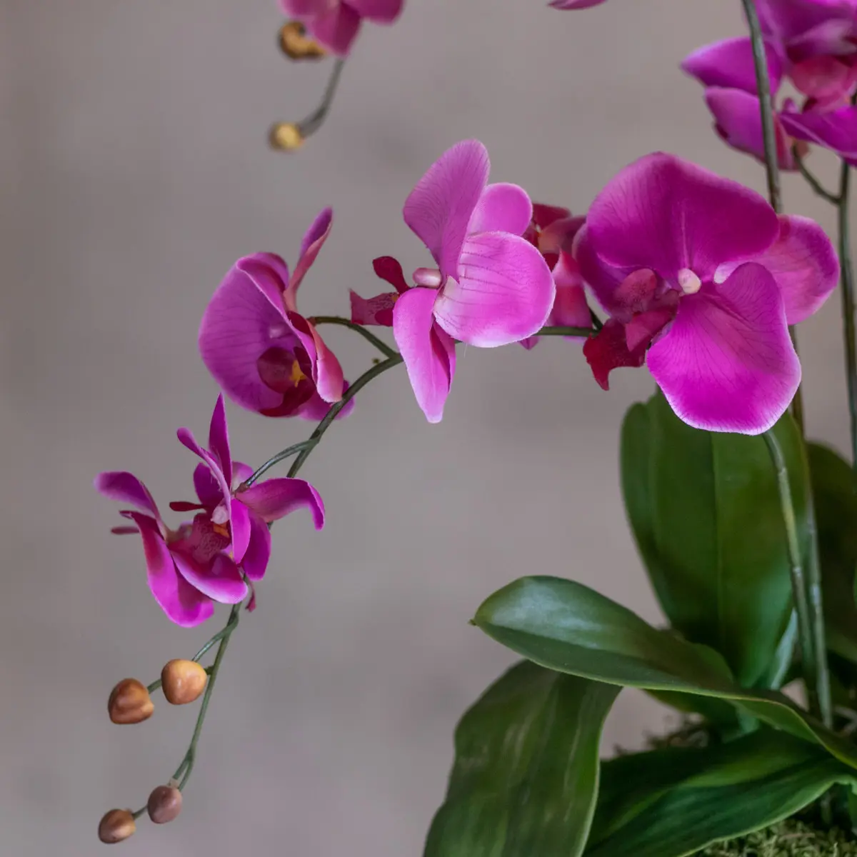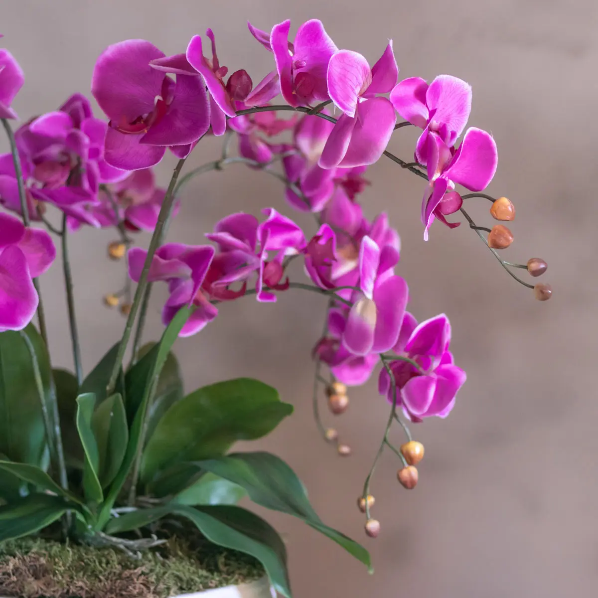 Das Blumenarrangement wird standardmäßig in einem Innen-Topf geliefert, kann aber auch mit einer großen Auswahl an Übertöpfen bestellt werden, wodurch es nicht nur natürlich aussieht, sondern auch eine schicke und moderne Ergänzung für jedes Interieur ist. Dank der hochwertigen Kunstmaterialien bleibt dieses Stück jahrelang schön, ohne Pflege oder Wasser.