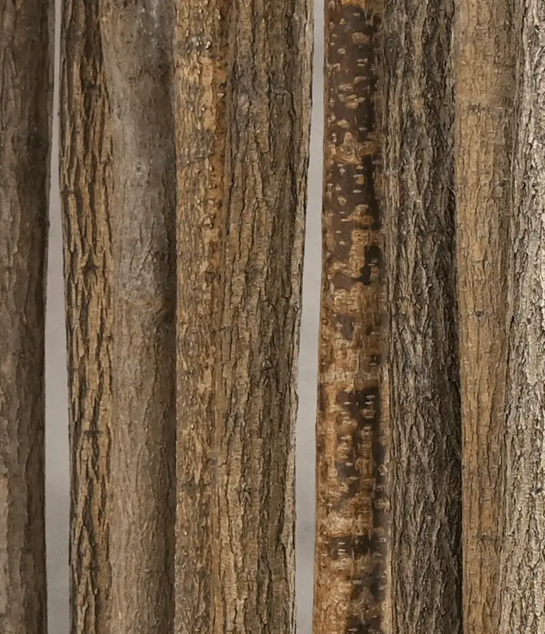 Der Raumteiler Elin ist aus echten Lindenstämmen mit Rinde gemacht, was ihm einen warmen und charaktervollen Look gibt. Jeder Stamm hat eine einzigartige Struktur, sodass kein Raumteiler dem anderen gleicht. Die Rinde wurde bewusst erhalten, um den rustikalen, natürlichen Charakter zu betonen.