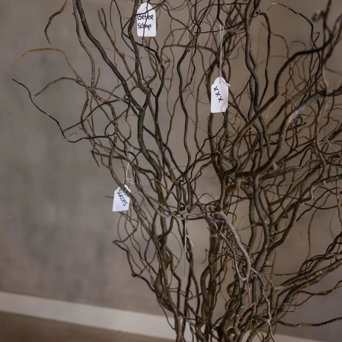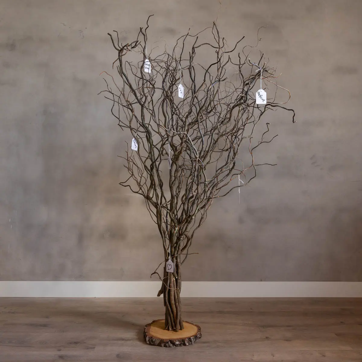 Verwende den Baum, um Wünsche, Gedanken oder Erinnerungen aufzuhängen – perfekt für Hochzeiten, Gedenkfeiern, Partys oder als stilvoller Blickfang in deinem Zuhause oder Büro. Die skurrile Form der Weidenzweige sorgt für einen einzigartigen, natürlichen Look. Kein Wunschbaum gleicht dem anderen: Jeder ist ein handgefertigtes Kunstwerk der Natur.