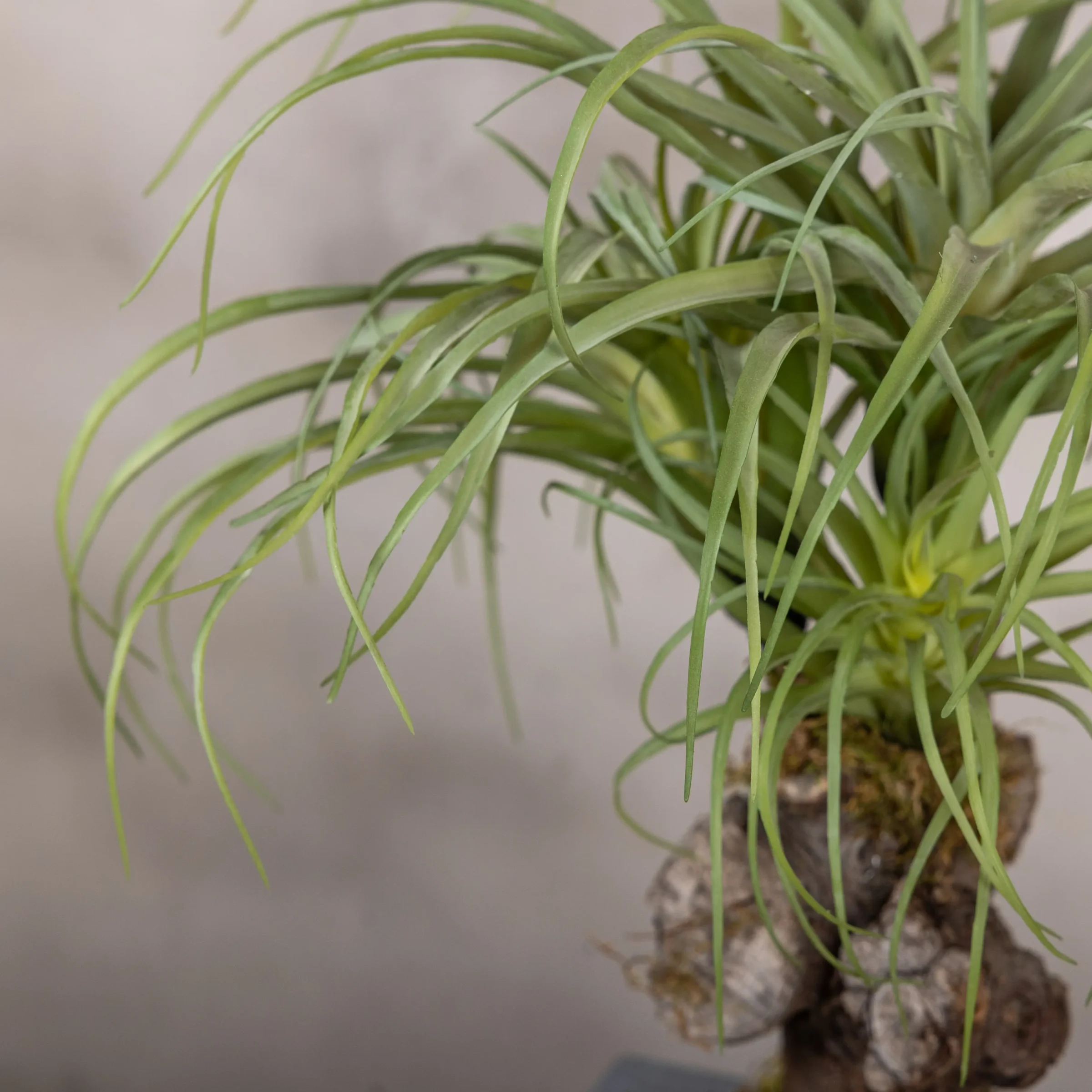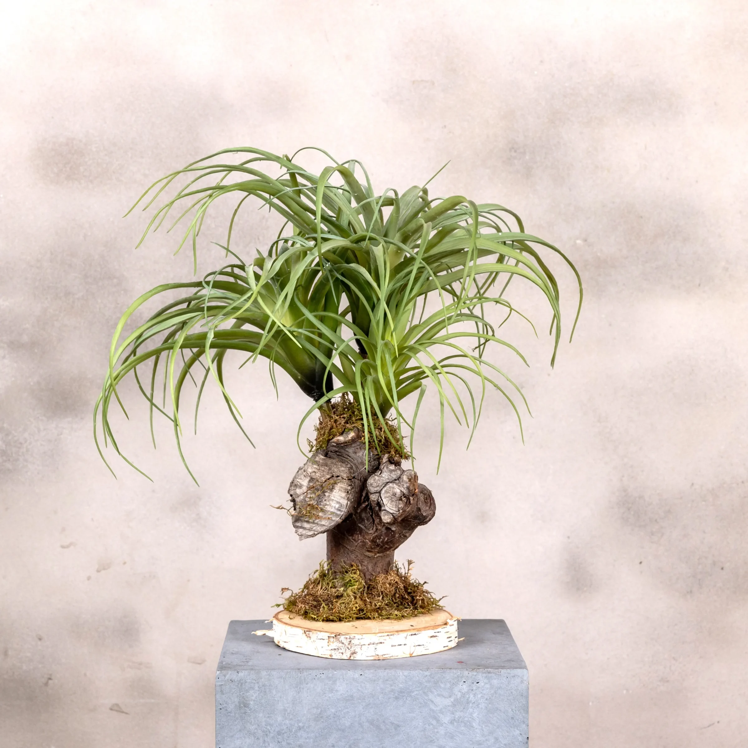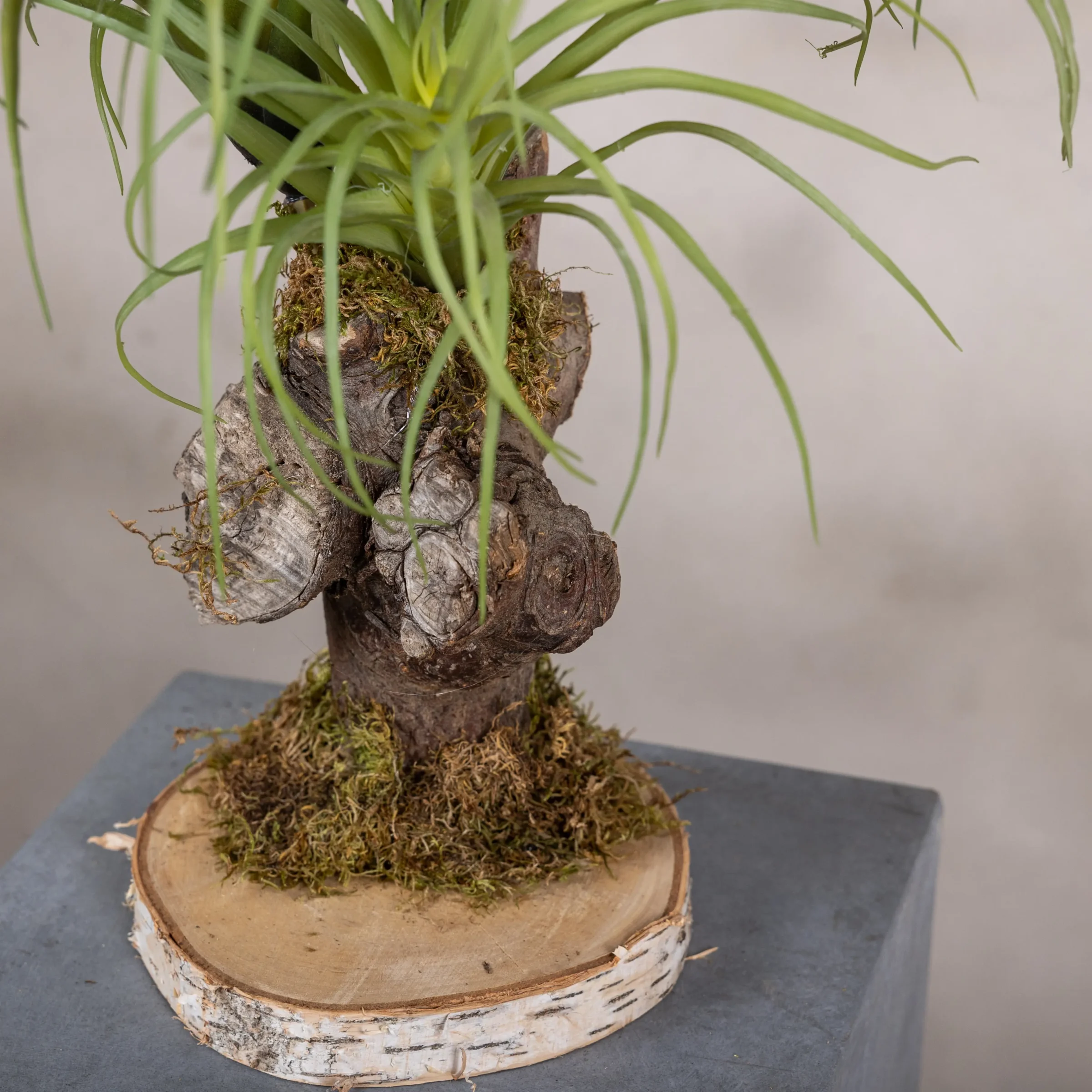 Der Minibaum Tillandsia ist eine verspielte und exotische Dekoration mit einem auffälligen Aussehen. Die luftigen, langen Blätter fächern sich anmutig von einem robusten Holzstamm auf und verleihen deinem Interieur sofort ein tropisches Gefühl. Das natürliche Moos an der Basis verleiht ihm ein besonders realistisches und stilvolles Aussehen.