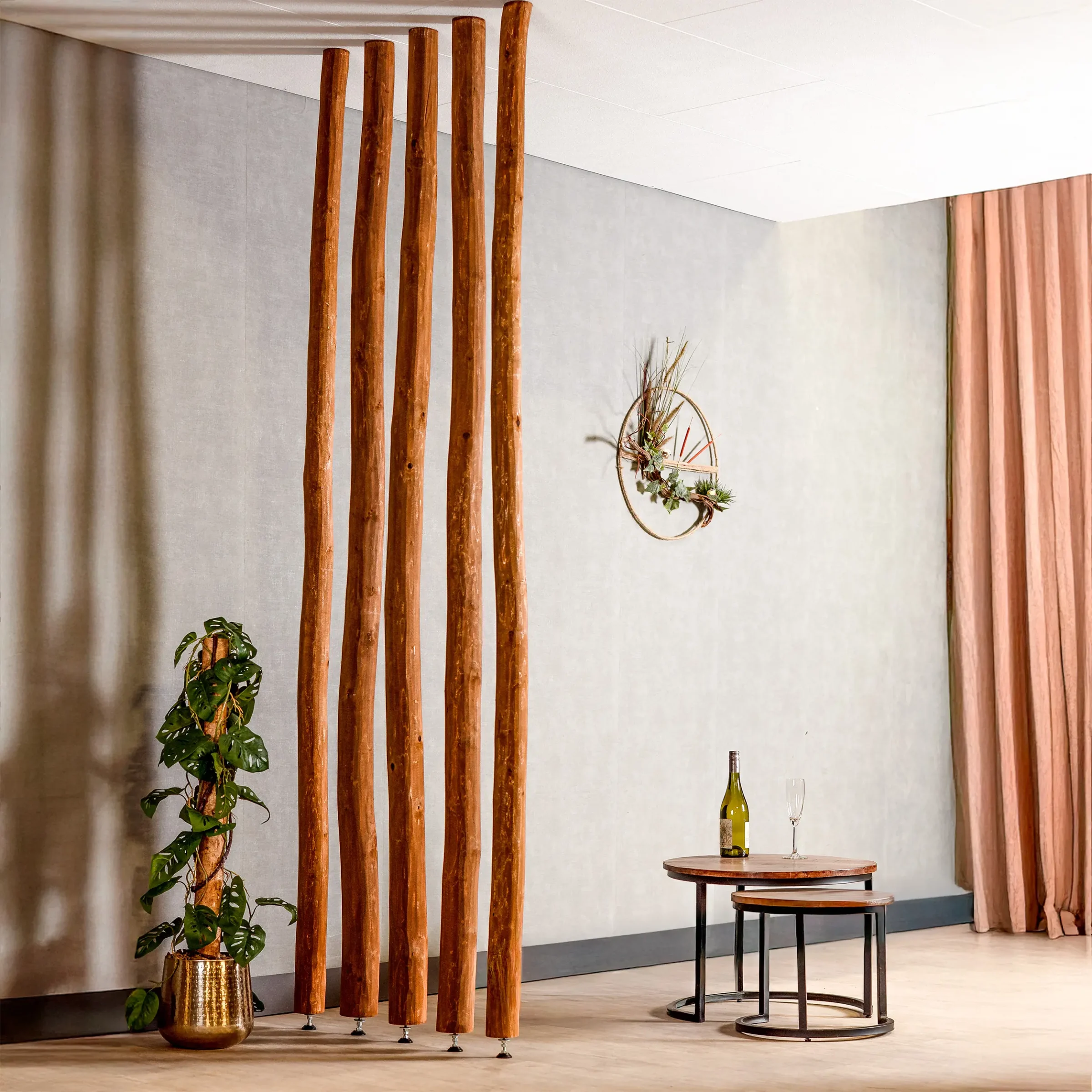 Dank der verstellbaren Stellschraube an der Unterseite lassen sich die Stämme fest zwischen Boden und Decke befestigen – ideal als Raumteiler, Wanddekoration oder Pflanzenstütze. Die Höhe ist verstellbar, sodass sie für fast jede Standarddeckenhöhe geeignet sind.