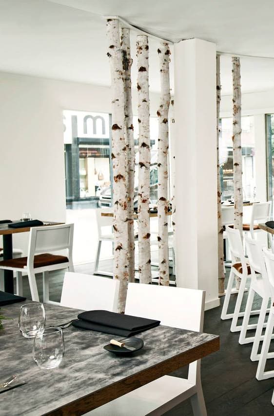 Bring mit einem maßgeschneiderten Raumteiler aus natürlichen Baumstämmen Atmosphäre und Struktur in dein Zuhause.