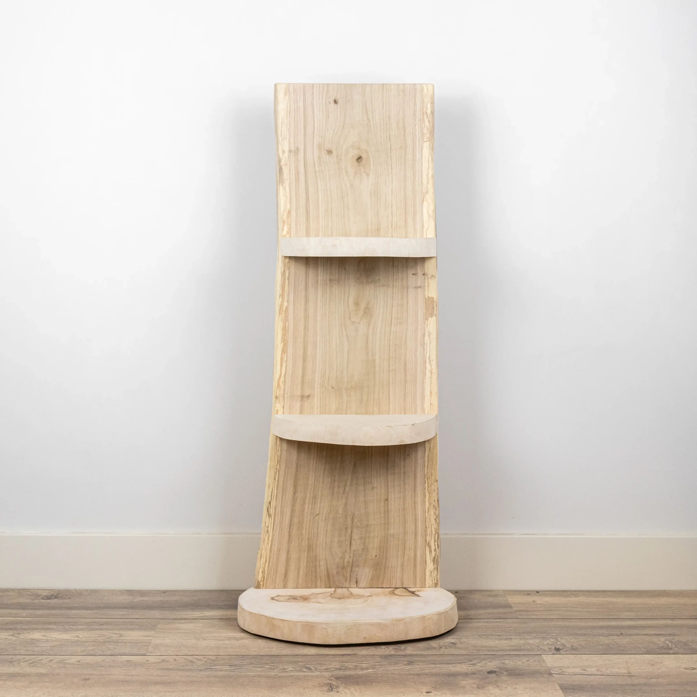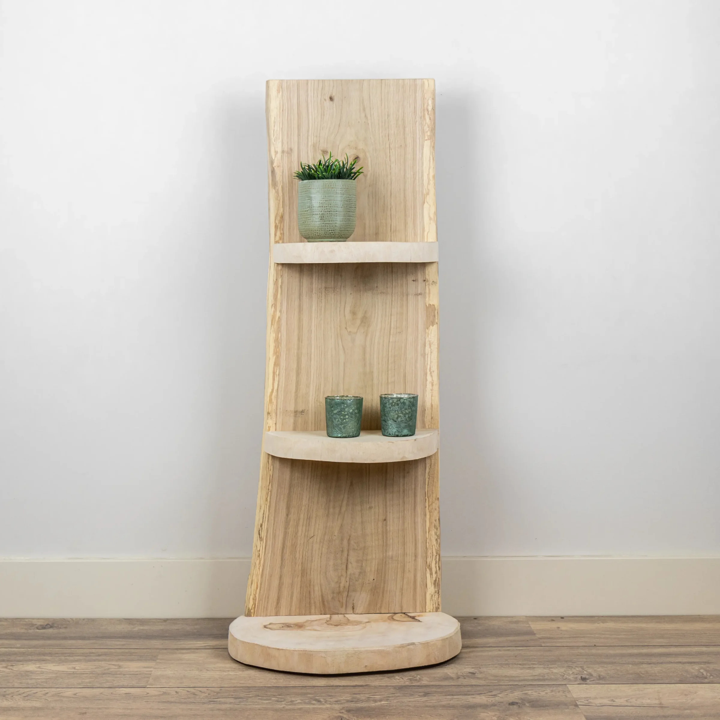 Dank seiner schmalen Größe passt dieses Baumstammregal perfekt in kleine Ecken oder als dezenter Blickfang in jedes Interieur.