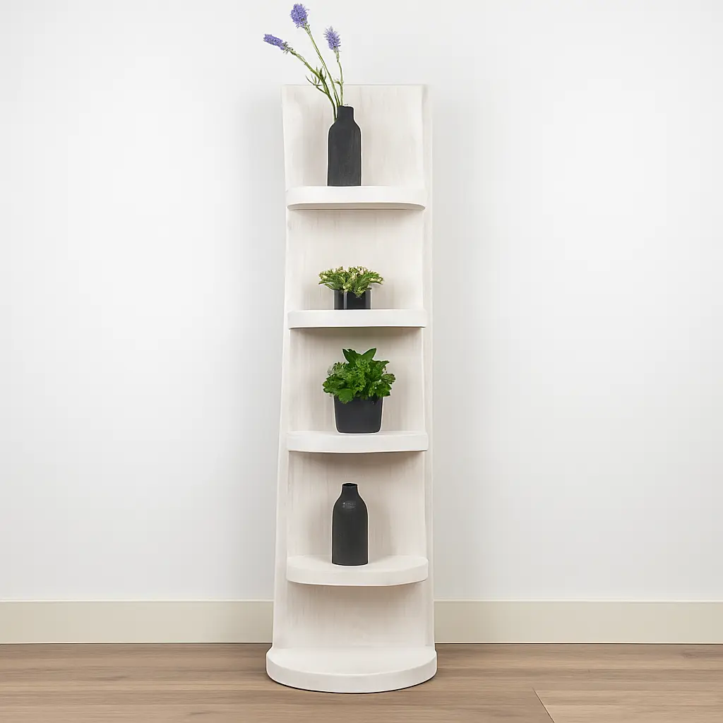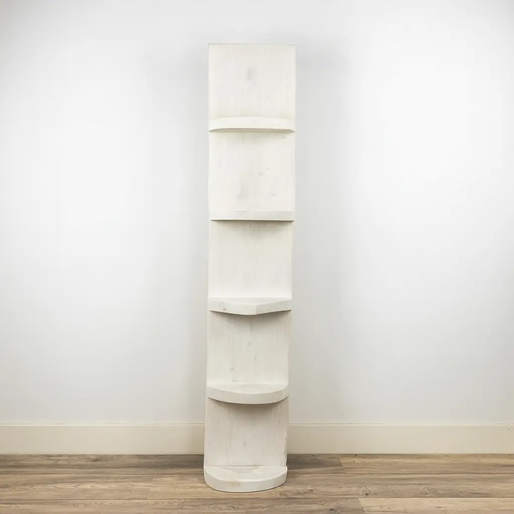 Dank seiner schmalen Form passt dieses Baumstammregal perfekt in kleine Ecken oder als dezenter Blickfang in jedes Interieur.