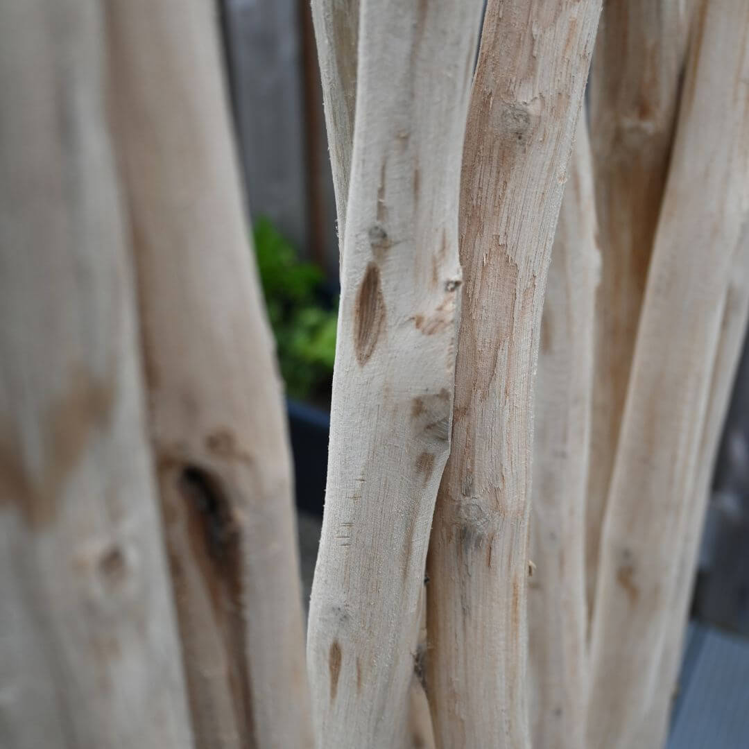 Dieser stylische Raumteiler aus der Jorn-Serie ist aus massivem Teakholz gemacht – einem nachhaltigen Hartholz mit einem warmen, natürlichen Look. Die schlanken Stämme wurden sorgfältig ausgewählt und auf einem natürlichen Holzfuß platziert, sodass der Raumteiler stabil steht und trotzdem einen luftigen Eindruck macht.