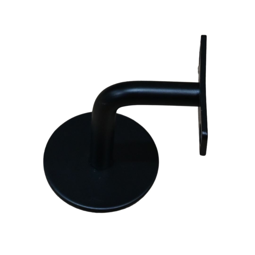 Schwarzer Metall-Treppengeländerhalter für die verdeckte Montage an der Wand, passt für runde Treppengeländer.