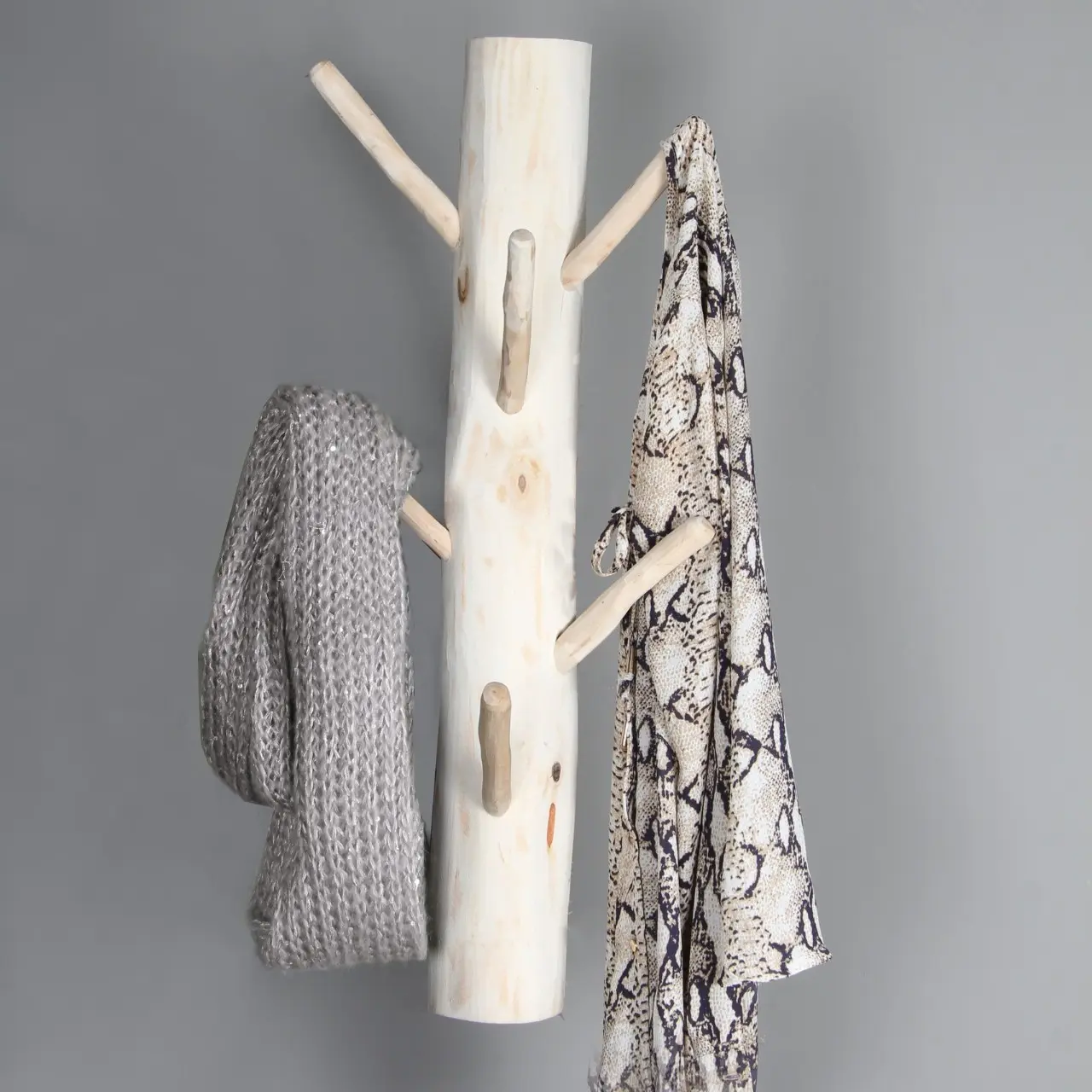 Jede Garderobe ist dank der natürlichen Maserung und Struktur des Holzes ein Unikat. Die naturbelassene Oberfläche betont das authentische Aussehen des Birkenholzes, sodass diese Garderobe perfekt zu einem ländlichen, skandinavischen oder bohemischen Wohnstil passt.