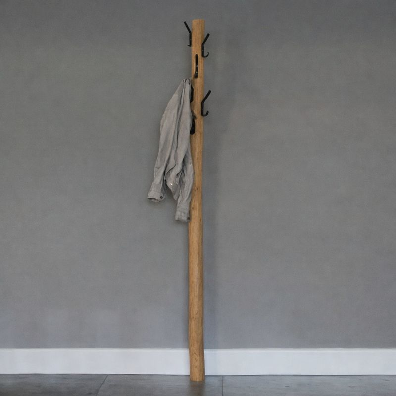 Dank seiner schlanken Form nimmt der Kleiderständer wenig Platz ein, verleiht Ihrem Flur, Schlafzimmer oder Badezimmer jedoch eine warme und rustikale Ausstrahlung. Jedes Exemplar ist aufgrund der natürlichen Struktur und Maserung des Holzes ein Unikat, sodass Sie immer ein authentisches Wohnaccessoire in Ihr Zuhause holen.