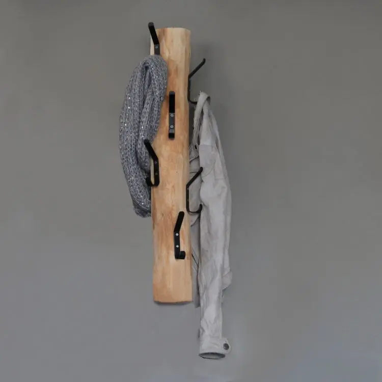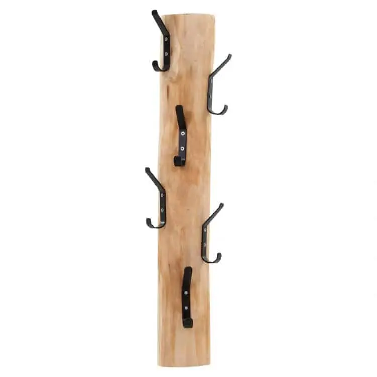 Dieser robuste Wandgarderobe ist aus einem entrindeten Birkenstamm in Naturoptik gemacht, was ihm einen frischen und natürlichen Look verleiht. Die sechs stabilen schwarzen Metallhaken bieten genug Platz für Jacken, Taschen, Schals oder Handtücher.