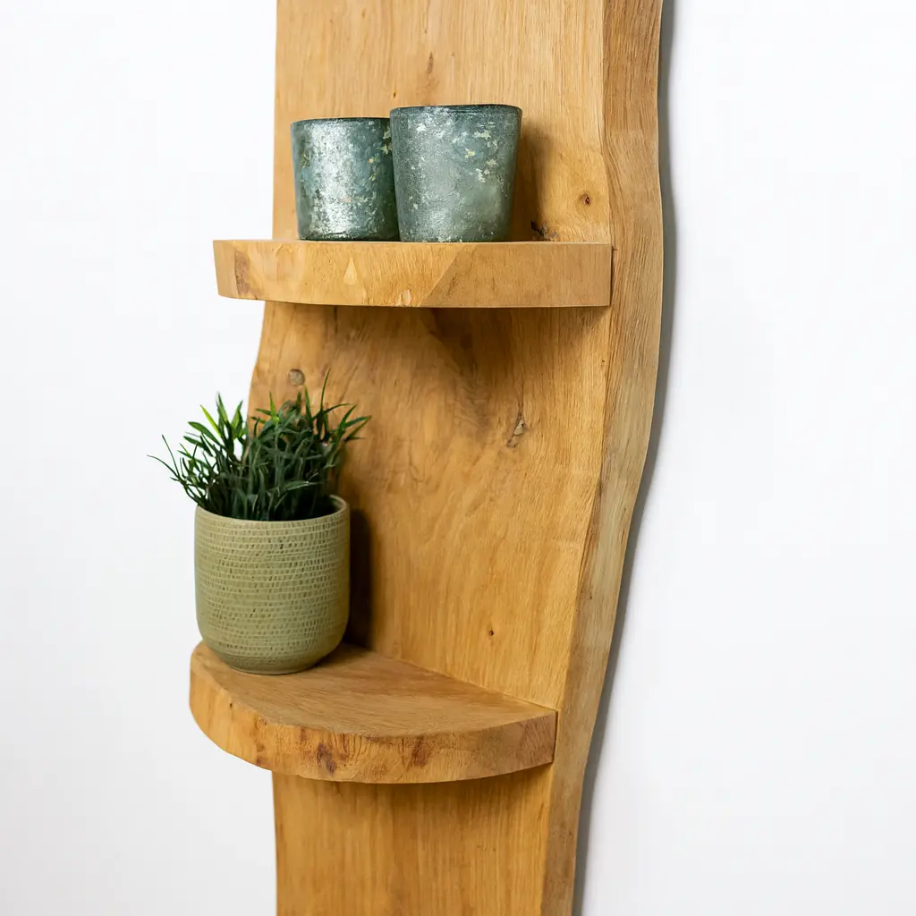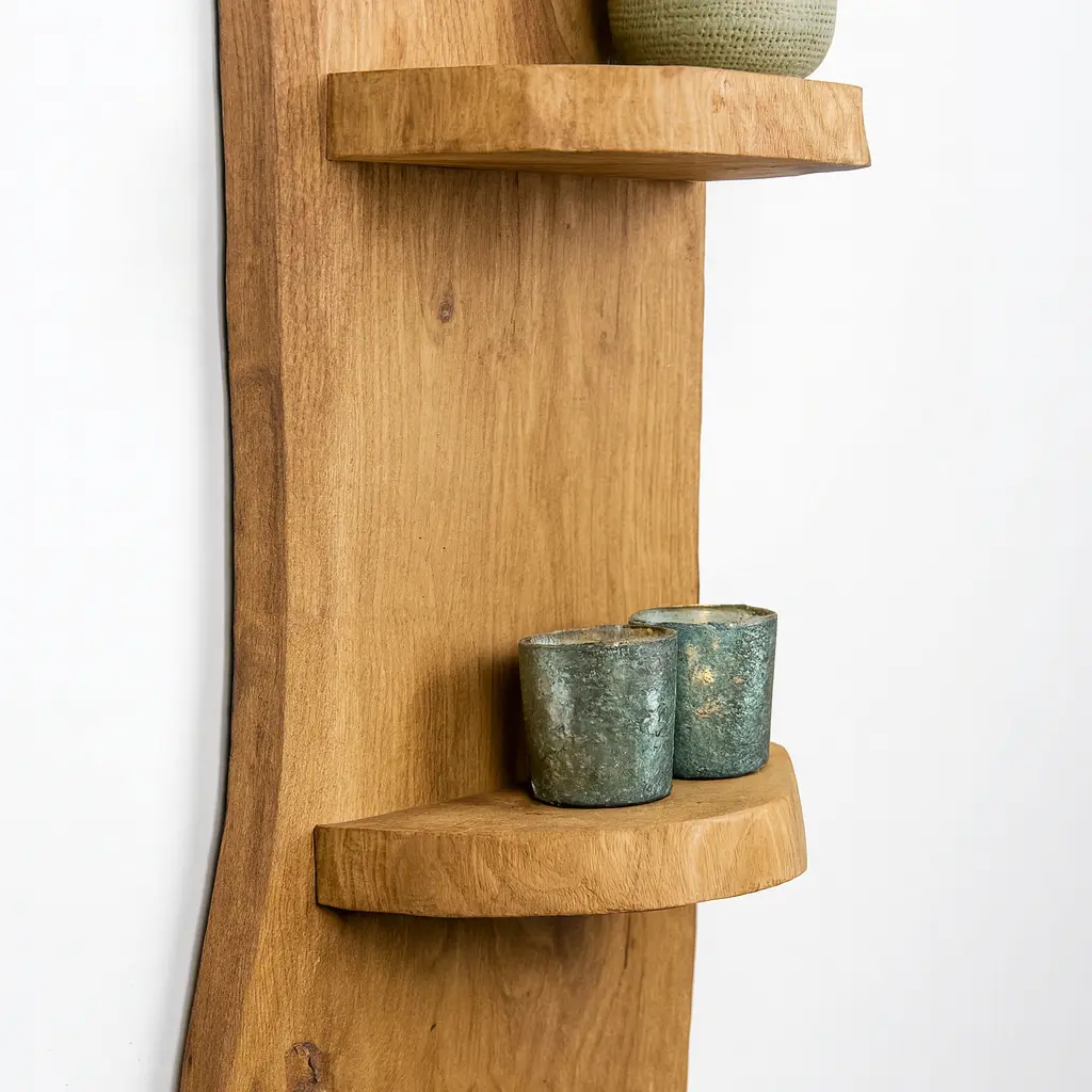 Dank seiner kompakten Größe und der natürlichen Form des Holzes passt dieses Baumstammregal sowohl in ein modernes als auch in ein ländliches Interieur. Es lässt sich einfach an der Wand befestigen und eignet sich ideal als dekorativer Akzent.