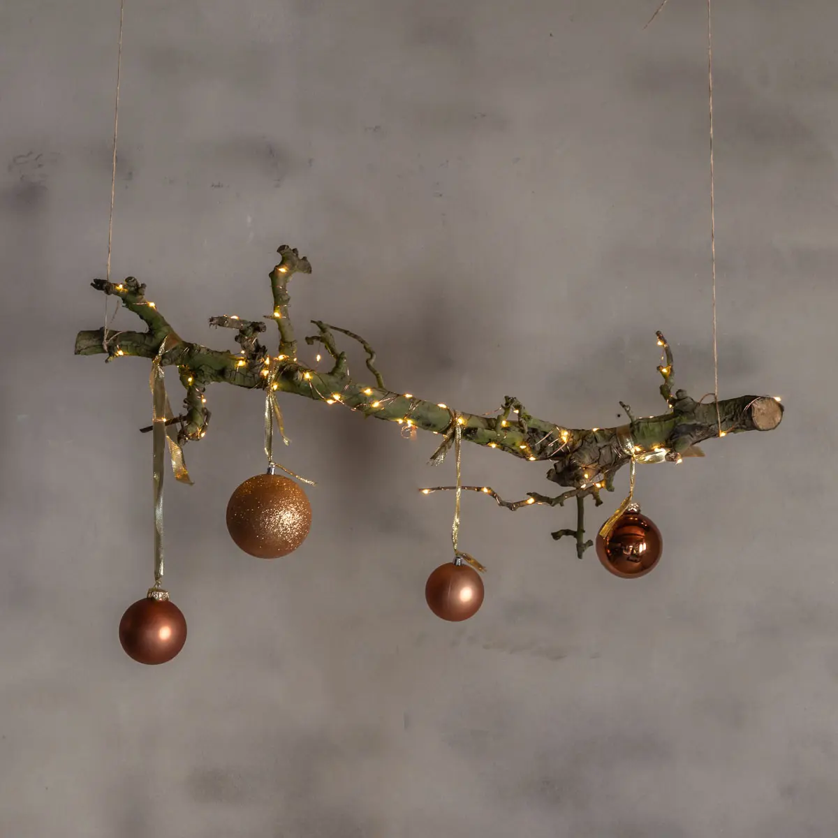 Diese Girlande aus einem natürlichen Birnbaumzweig mit Rinde hat einen robusten, authentischen Look und behält den Charakter von echtem Holz vollständig bei. Die skurrilen Formen, Äste und die raue Rinde verleihen dem Zweig einen reinen, natürlichen Charme, der sich perfekt für ein warmes und stimmungsvolles Weihnachtsstyling über dem Esstisch, in einem Schaufenster oder an einer Wand eignet.