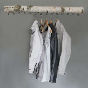 Unser Sortiment besteht aus Kleiderständern mit Fußplatten aus Holz oder rostfreiem Stahl. Die Ständer sind aus Birkenstämmen mit der markanten Schwarz-Weiß-Rinde und aus entrindeten Baumstämmen gearbeitet. Sie finden bei Zweigedeko auch einmalige hölzerne Wandkleiderhaken aus Baumstammstücken mit einem Aststummel zum Aufhängen von Gegenständen. Darüber hinaus bieten wir Birkenstammstücke mit eingeschraubten Eisenhaken an, an die sich Kleiderbügel aufhängen lassen. Sie können auch entrindete Aststücke mit Lederschlaufen in den Farben Schwarz und Braun zum Aufhängen an der Decke bestellen.
